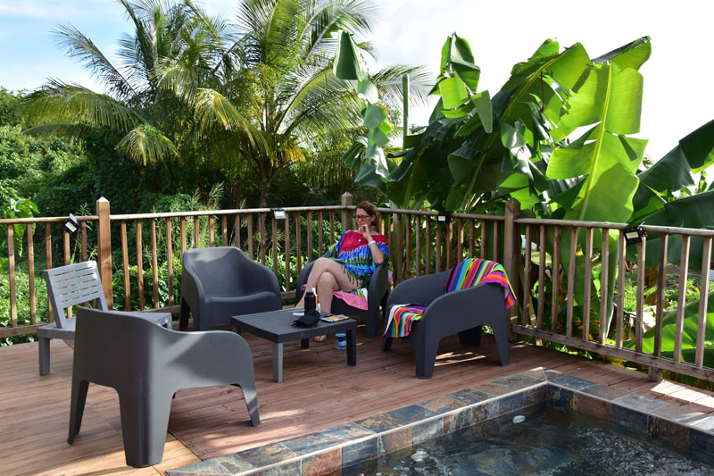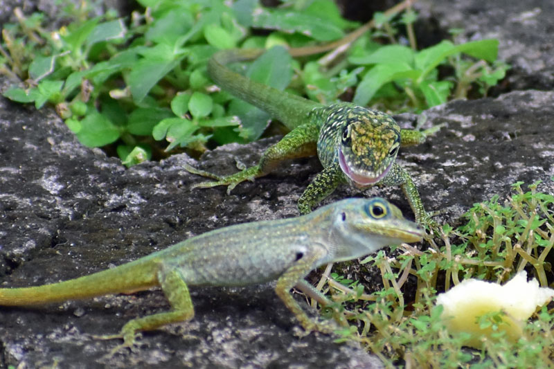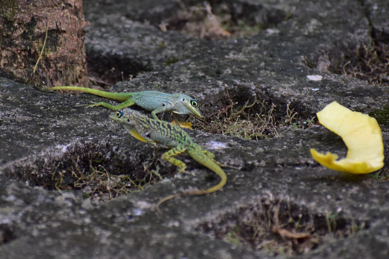 Fort heureusement, même en restant ici, nous avons occupé fort agréablement la journée car nous avions beaucoup de choses à observer et plus particulièrement des oiseaux et des lézards… Il faut courir d’un côté à l’autre pour essayer d’avoir le plus beau cliché possible, pas vraiment facile avec certains spécimens, surtout les colibris… mais je suis ravie car j’ai réussi une assez jolie photo !