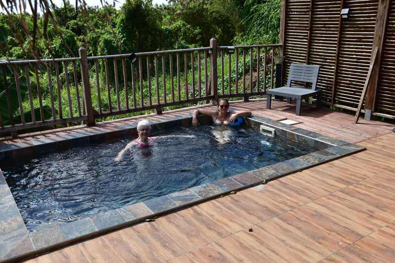 Grâce à nos petits compagnons justement, j’ai de quoi vous raconter notre journée ! Journée très calme encore puisque nous sommes restés « chez nous ». Nous voulons être en super forme avant d’aller nous balader et c’est pour cela que nous avons décidé de profiter de la piscine et de notre environnement ! Il faut dire que le temps est très capricieux et que le soleil alternant avec de bonnes averses, il nous a semblé plus judicieux de pouvoir se mettre vite fait à l’abri ! Cela ne nous a pas empêchées de profiter de la piscine pour se rafraîchir… Si vous êtes observateurs, vous aurez remarqué l’accord du verbe « empêcher », féminin/pluriel, ce qui signifie évidemment que Gilbert n’a pas fait trempette… L’eau n’est toujours pas son environnement préféré 😜 !