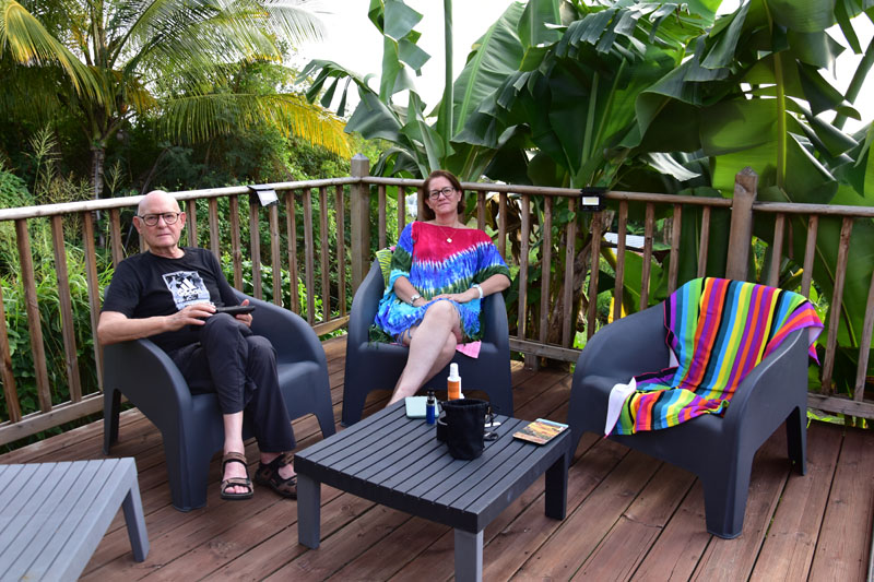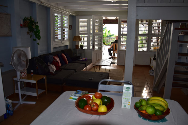 Nous nous sommes beaucoup amusés à observer les lézards de toutes sortes, qui pullulent ici ! Nous avons mis des morceaux de pommes destinés à notre petit oiseau noir et rouge, notre petit chouchou (on sait qu’il adore ça car hier il est rentré dans la maison et nous avons retrouvé une pomme picorée dans la coupe à fruits). A notre grand étonnement, les lézards ont tous rappliqué et nous avons assisté à une jolie bagarre ! Malgré tout, notre petit piou piou a su prendre sa part… il essaye toujours de rentrer dans la maison, mais nous sommes quand même un peu plus futés que lui et maintenant, la coupe à fruits est recouverte d’un torchon 🤭!