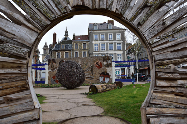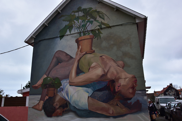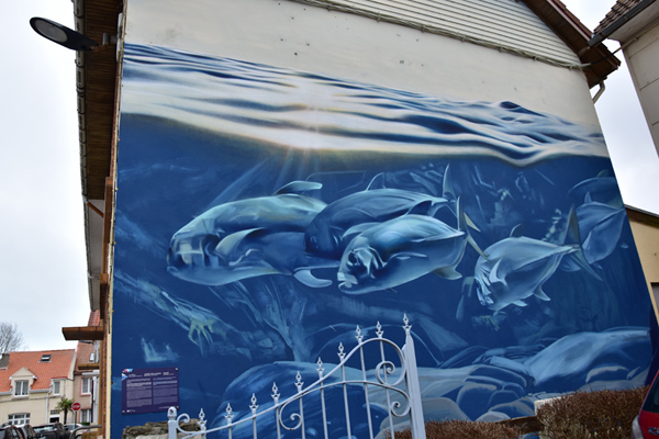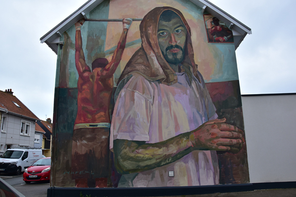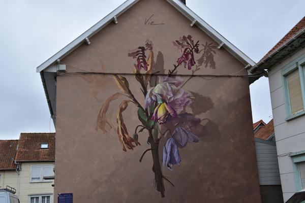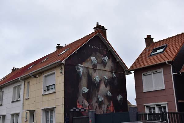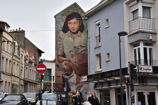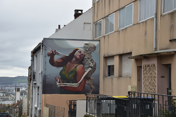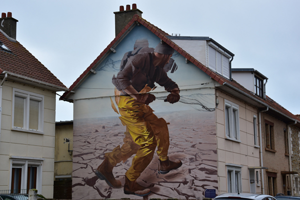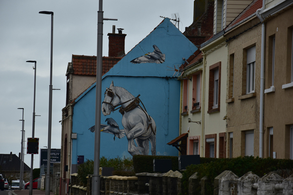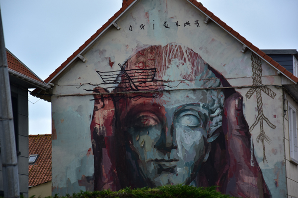 Comme je vous le disais, nous avions prévu de découvrir le street Art et c’est ce que nous avons fait ensuite. Depuis quelques années, à l’occasion du festival « Parcours d’Art urbain – Street art », Boulogne-sur-Mer laisse carte blanche à des artistes urbains, d’ici et d’ailleurs, pour qu’ils livrent leur vision de la ville. Si beaucoup d’entre eux exposent dans les galeries du monde entier, ils ont tous débuté dans la rue et participent, chacun à leur façon, à l’émancipation de la culture urbaine. Une vraie galerie à ciel ouvert. Par contre, toutes ces oeuvres sont disséminées dans la ville et il est difficile de tout voir en très peu de temps… nous avons donc choisi les quartiers où elles étaient le plus concentrées.