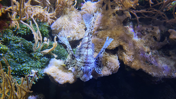 Après s’être bien restaurés dans un restaurant du centre ville (c’est fou les portions servies dans le Nord !), nous nous sommes rendus dans ce magnifique aquarium, le plus grand d’Europe, qui se classe 5ème dans la hiérarchie mondiale. C’est aussi le plus grand centre européen d’élevage de coraux. Nausicaa dispose d’une biodiversité extraordinaire. Le site abrite une variété d’espèces marines, allant des magnifiques poissons colorés aux majestueuses tortues marines en passant par les fascinantes méduses (sans oublier une énorme raie manta). Bref, beaucoup de merveilles à découvrir et je dois vous dire que nous nous sommes régalés et que nous n’avons pas vu passer les 4 heures pendant lesquelles nous avons déambulé… Nous avons bien sûr pris beaucoup de photos, bien qu’il ne soit pas facile de photographier dans un tel endroit !
