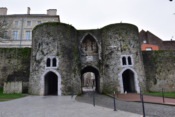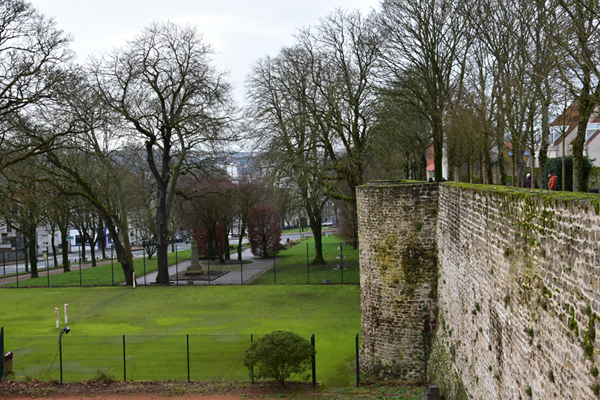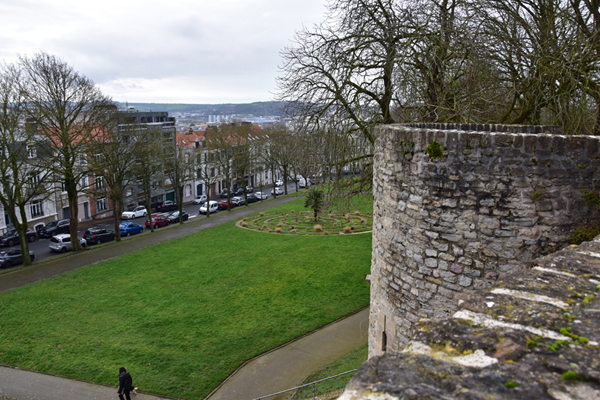 Le dimanche matin, le temps, sans être magnifique était tout à fait propice pour une balade en ville. Nous ne nous étions pas tellement documentés sur cette ville, sinon qu’il y avait du street art, chose que nous aimons beaucoup. A notre grande surprise, la vieille ville de Boulogne-sur-Mer possède un ensemble étonnant de fortifications. Depuis le IIe siècle, la cité installée à une position stratégique cherche à se défendre des envahisseurs. Elevées entre 1227 et 1231 par le Comte Philippe Hurepel, fils du roi Philippe Auguste, les fortifications actuelles sont venues se superposer aux enceintes successives du camp romain de la « Classis Britannica ». Aujourd’hui encore, Boulogne-sur-Mer constitue l’un des sites fortifiés du moyen-âge les plus représentatifs de la région Hauts de France. On en apprend tous les jours, c’est pourquoi nous aimons tellement voyager ! Nous sommes donc partis découvrir tout ceci avec un réel plaisir. Nous avons fait le tour des remparts et nous avons beaucoup aimé notre balade d’autant que le temps s’est maintenu au beau…