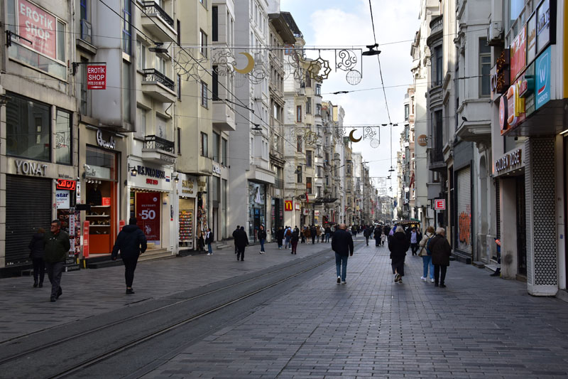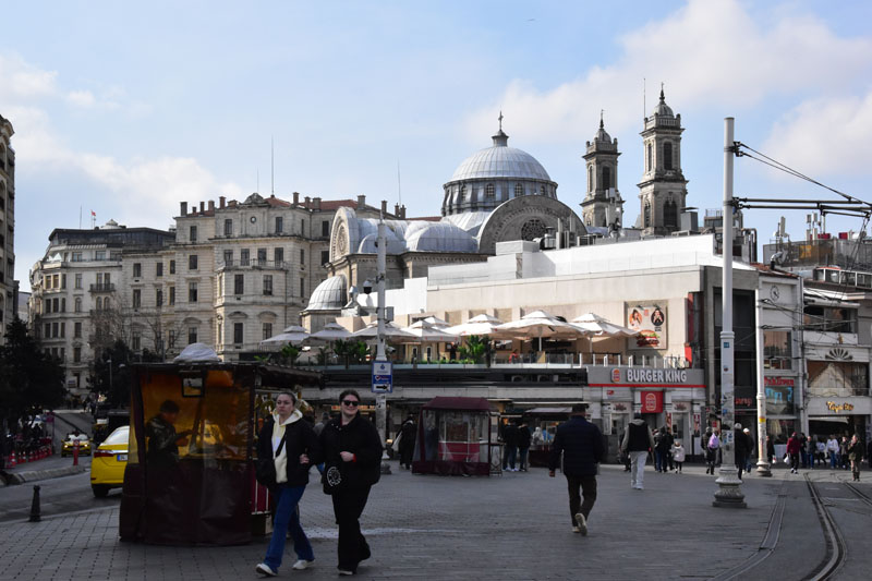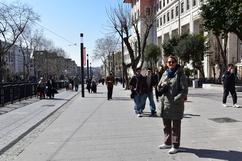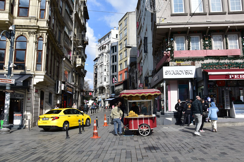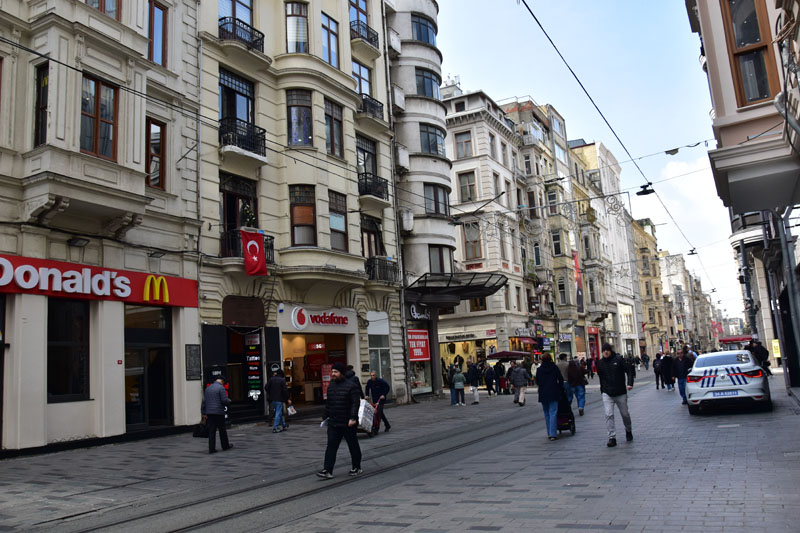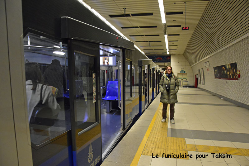 Après le tram, le funiculaire (côté Dolmabahçe – il y en a un autre pour la Tour de Galata) qui nous a conduit à la grande place Taksim. Très intelligemment (sans modestie aucune 😂), nous avons effectivement prévu notre parcours de façon à, non pas grimper des rues toute la journée, mais au contraire, les descendre… l’art de protéger les vieux os 😜.