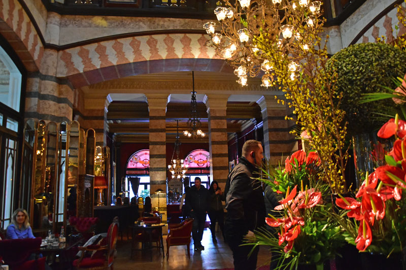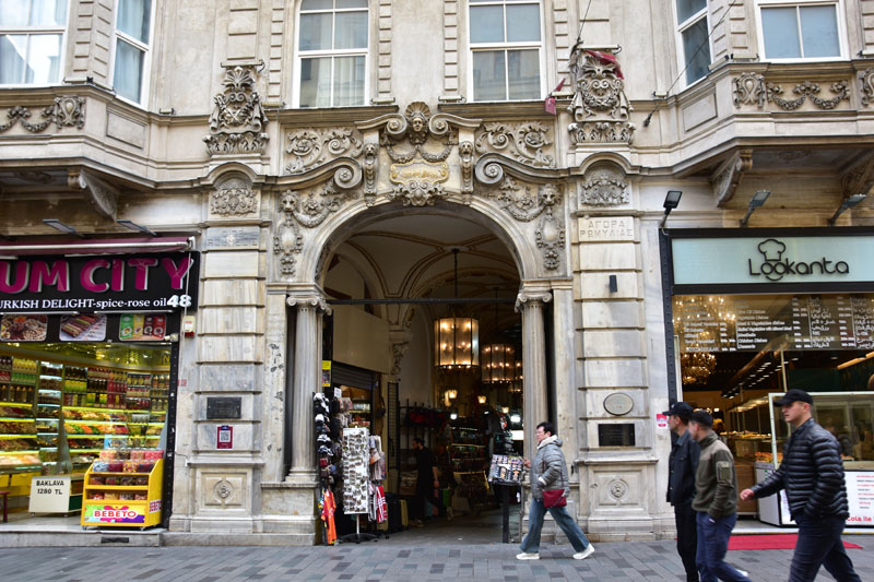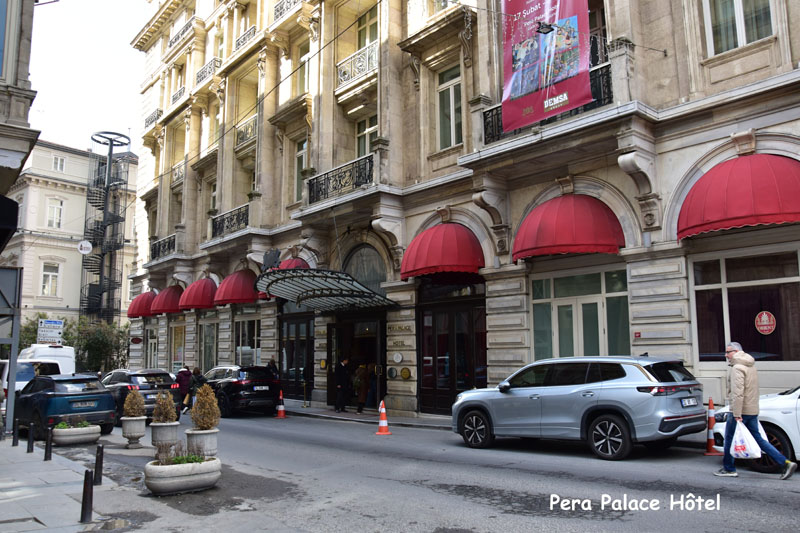 Du temps de l’Orient Express, le quartier s’appelait Pera et il en reste un hôtel de légende, édifié par la Compagnie des Wagons-lits en 1892, pour les passagers du train, le Pera Palace Hôtel… Nous avons pénétré à l’intérieur où il est possible de prendre un café dans un décor suranné. De nombreuses personnalités y ont séjourné dont Greta Garbo, Mata Hari, Atatürk et c’est dans la chambre 411 qu’Agatha Christie y écrivit le crime de l’Orient Express.