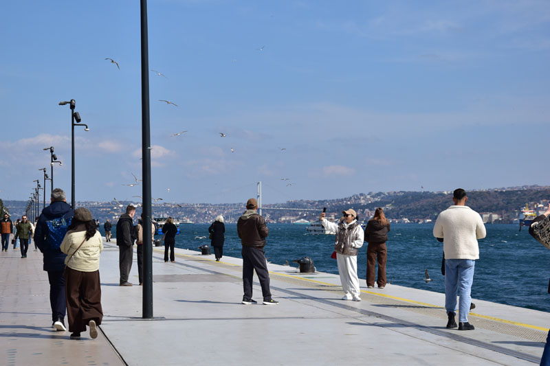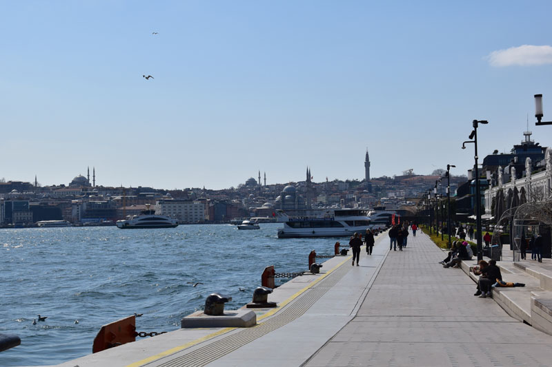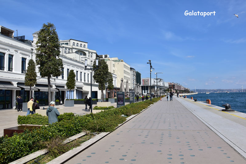 De la tour de Galata, nous avons continué à descendre jusqu’au Bosphore où nous nous sommes promenés. Pour la première fois, nous avons vu le Bosphore d’un bleu profond, génial ! Nous sommes allés jusqu’au Galataport, nouvelle réalisation de l’Istanbul contemporaine. Les anciens bâtiments ont été réhabilités et des nouvelles constructions ont vu le jour, créant une agréable promenade piétonne d’environ 1km…