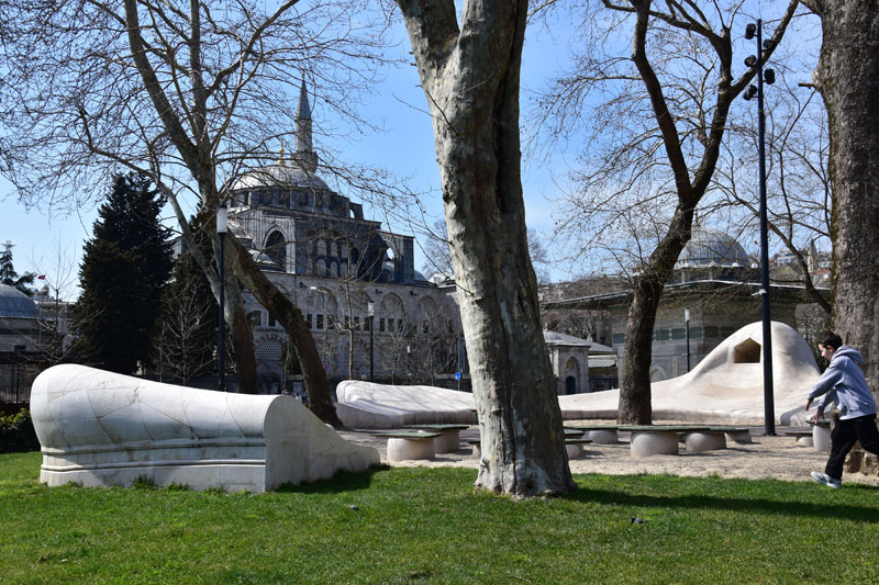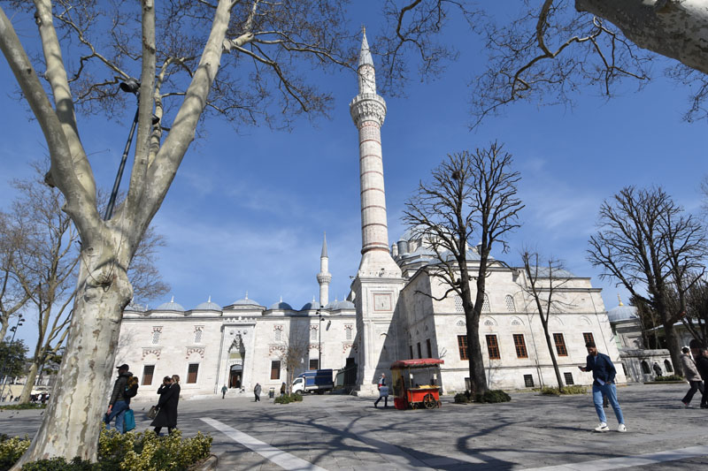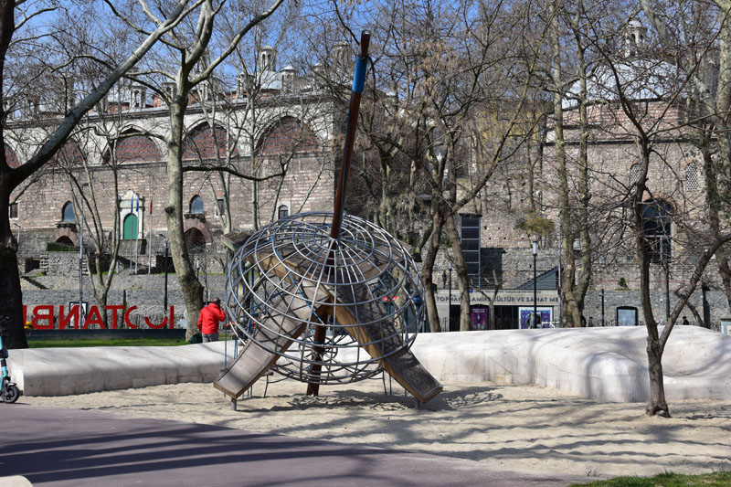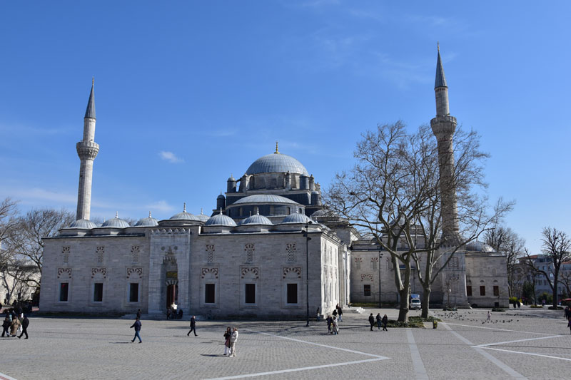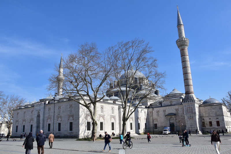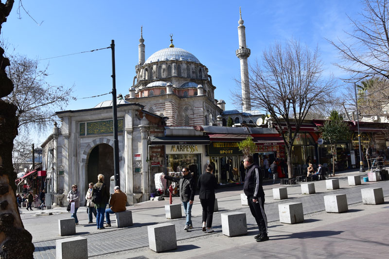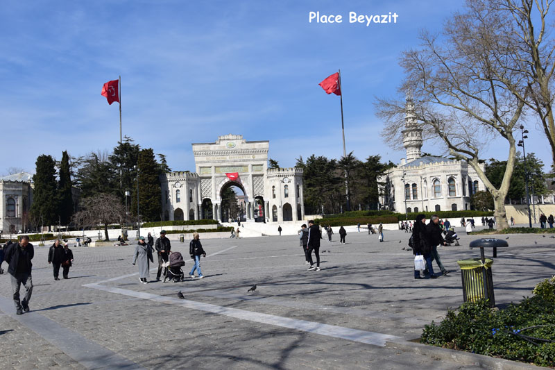 Nous avons repris notre tram sans aller jusqu’à l’arrêt pour notre hôtel. Nous sommes descendus 2 arrêts plus tôt pour visiter la place Beyazit, une belle place pavée dominée par l’élégante mosquée Beyazit de 1505 et le portail monumental mauresque de l’université datant de 1886. Cette place est situé à deux pas du grand bazar, près de l’endroit où nous nous étions reposés le premier jour à l’issu de la visite guidée… Nous n’avions pas vu que nous étions tout proches de ces beaux monuments… Chose réparée donc ! Nous pensions, initialement, reprendre le tram pour rentrer à l’hôtel, mais courageusement (toujours sans modestie aucune !), nous avons marché sur la grand rue bordée de magasins… agréable !