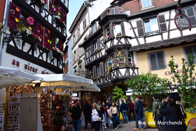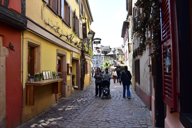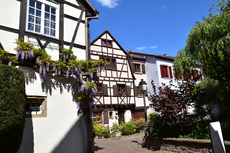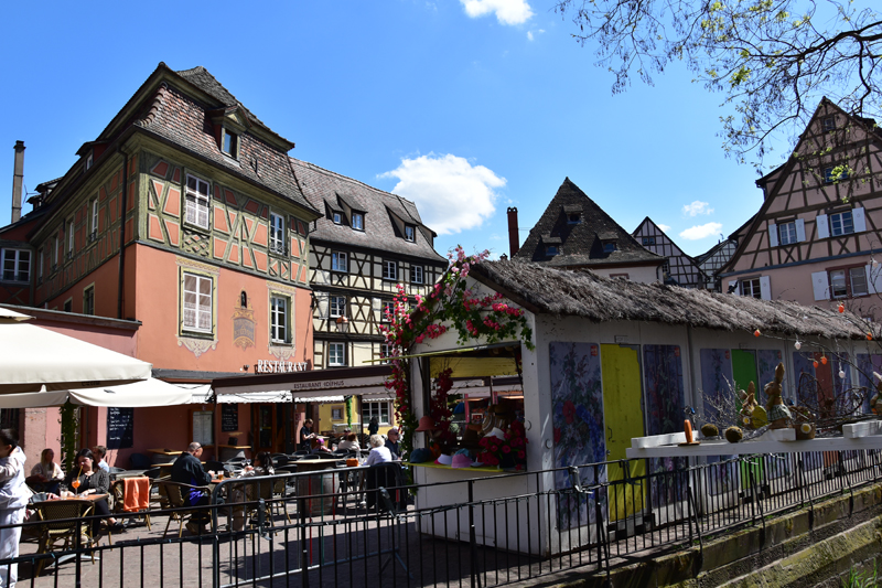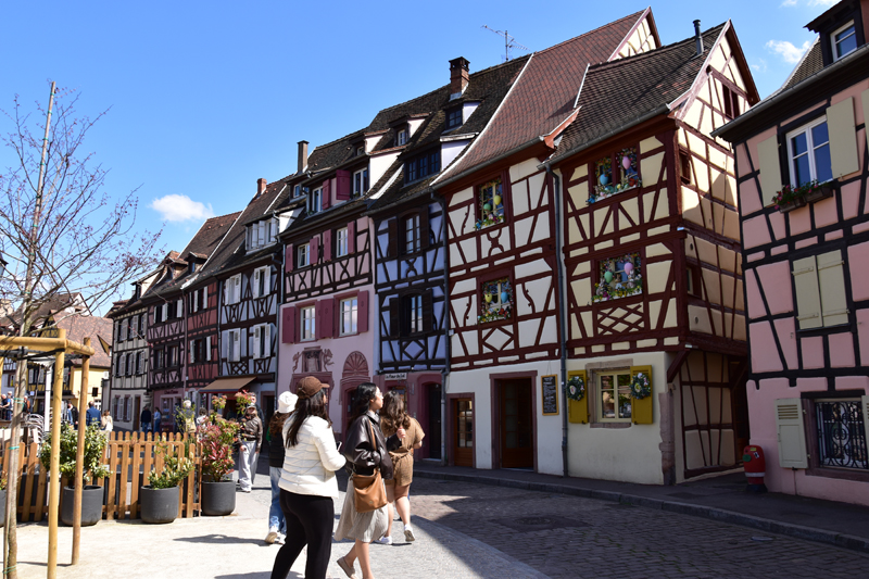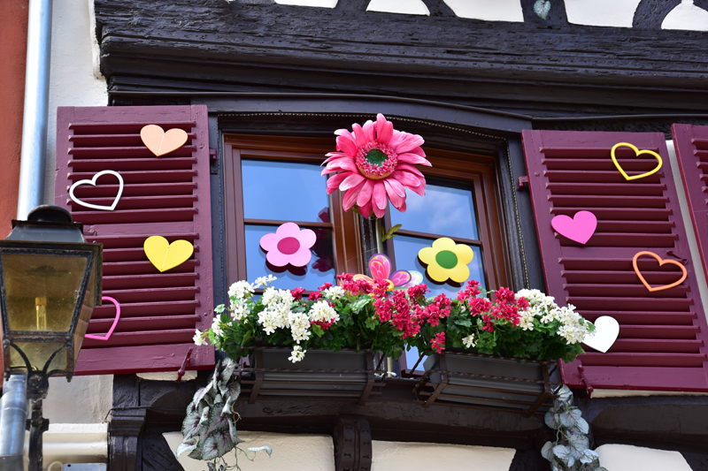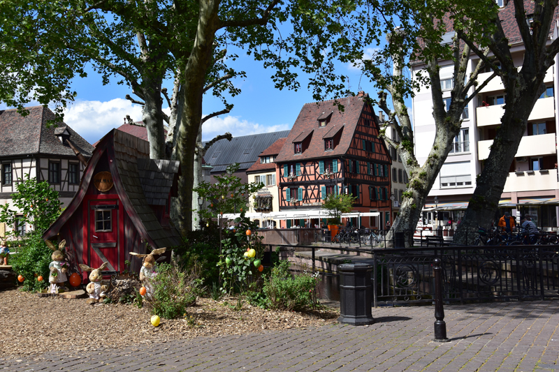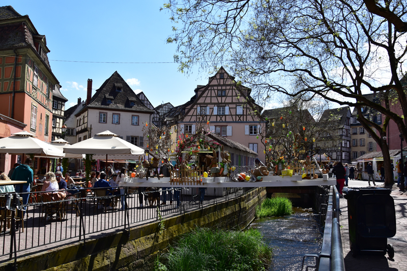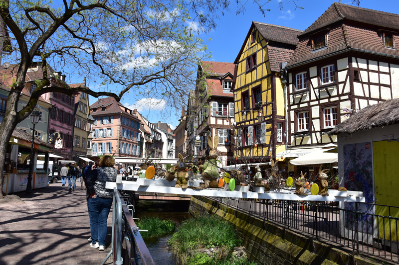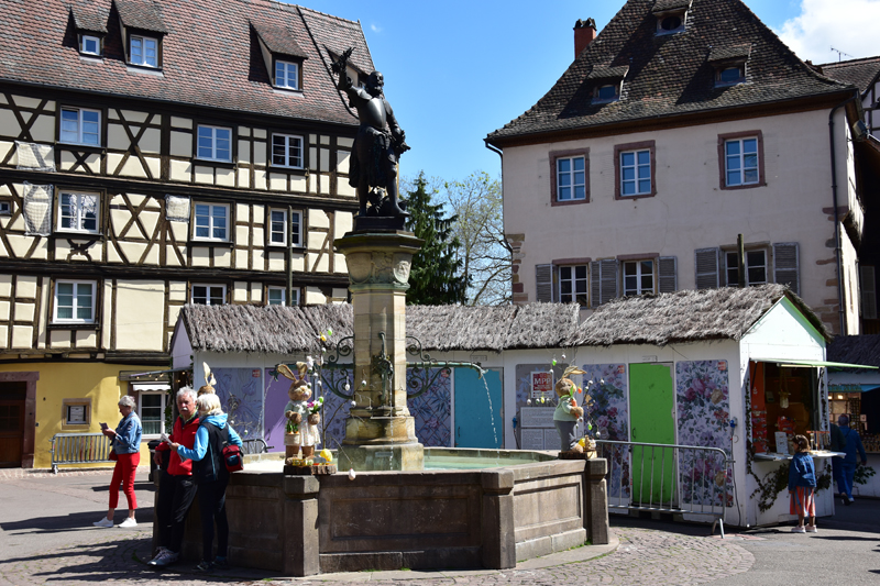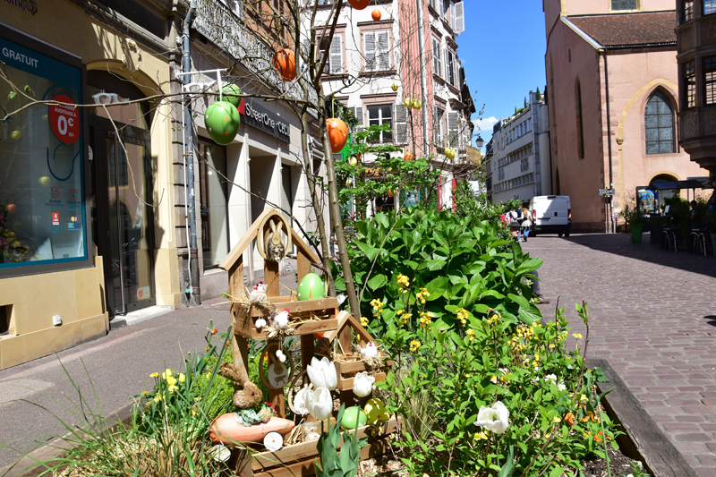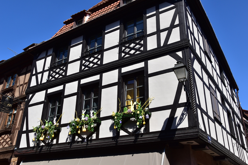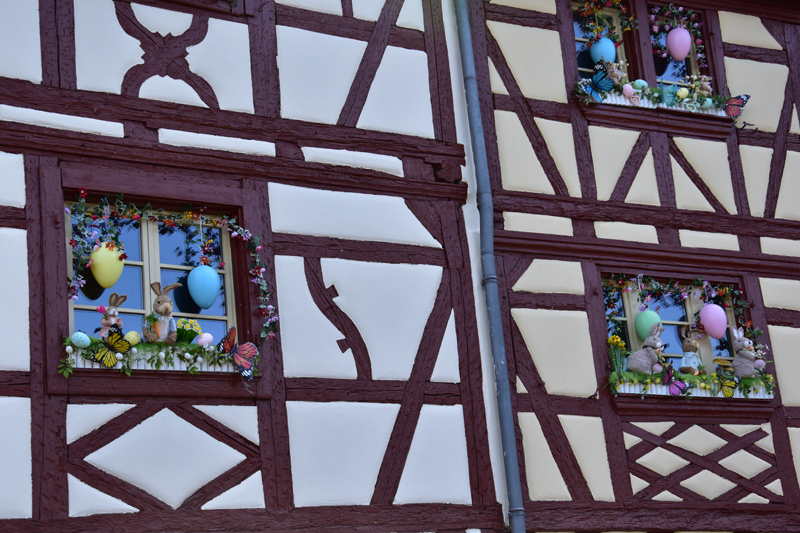 Nous avons parcouru une grande partie du circuit proposé par la ville et avons ainsi découvert de biens belles choses ! C’est un vrai régal de s’y promener et l’on ne sait pas très bien où tourner les yeux tellement les maisons sont colorées et décorées avec goût. De plus, tout comme à Obernai, nous avons été étonnés par les décorations de Pâques, qui n’ont rien à envier aux décorations de Noël ! Nous ne sommes pas habitués à ça !