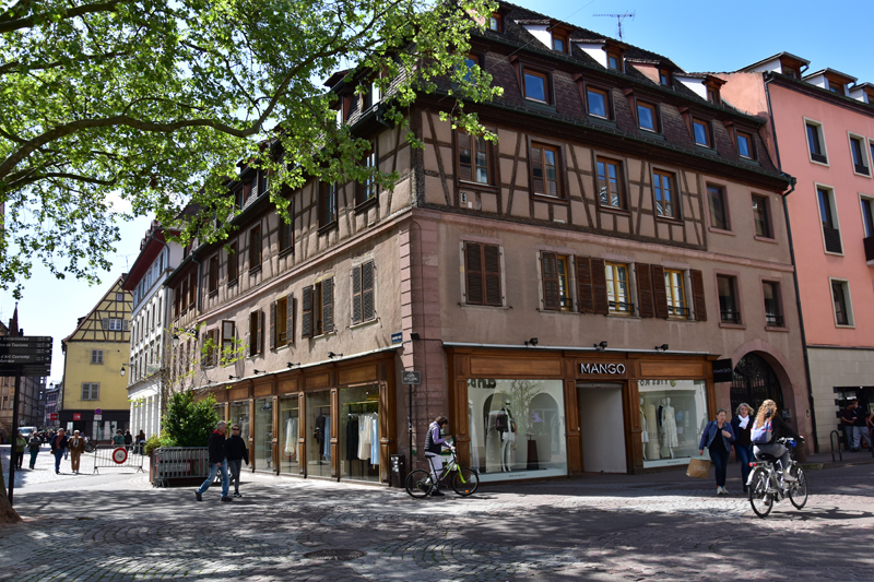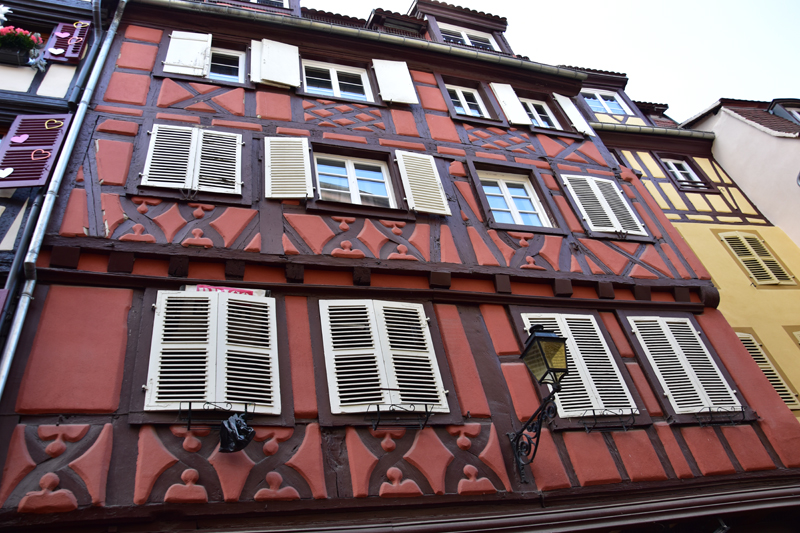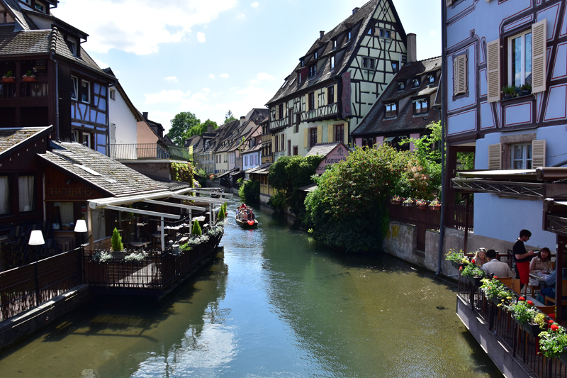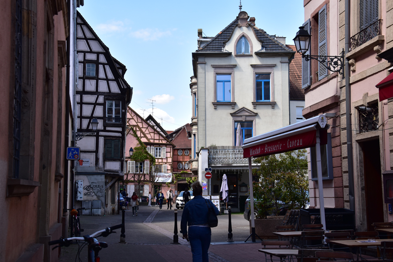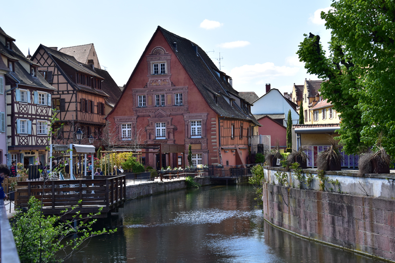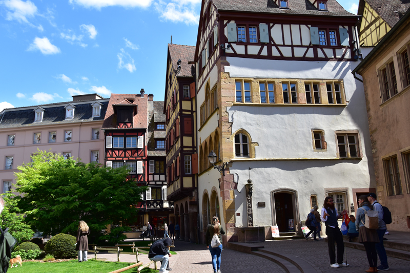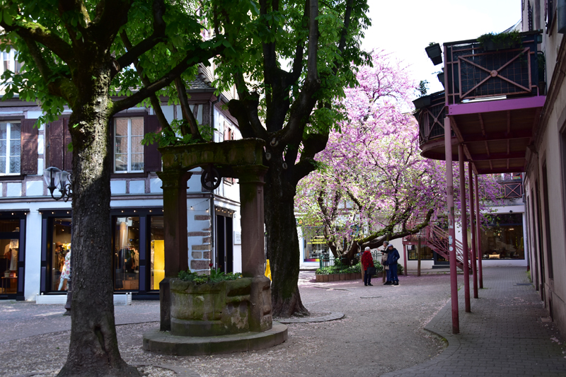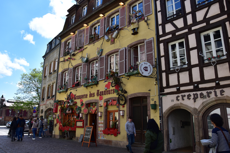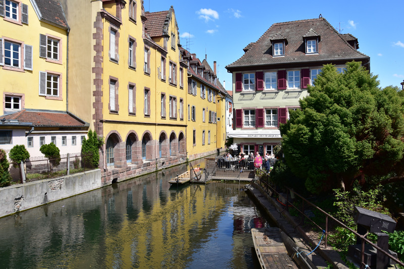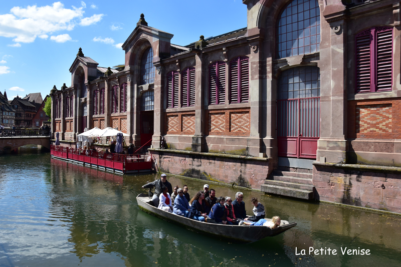 Nous avons continué notre flânerie jusqu’à la « Petite Venise », nom donné au cours d’eau de la Lauch qui provient sans doute de l’alignement original des maisons. Ce quartier se trouve au début du quartier de la Krutenau dont l’étymologie désigne des lieux de cultures maraîchères aux abords des villes. Habitée à l’origine par une communauté rurale de vignerons, maraîchers et bateliers, ce cours d’eau leur permettait initialement de convoyer leurs marchandises jusqu’au centre de la cité, venant notamment approvisionner le Marché Couvert.