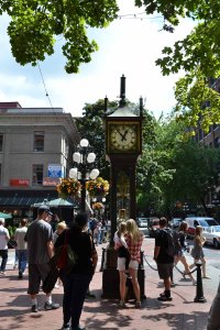 Nous avons continué par le quartier de Gastown, le plus ancien de la ville avec sa principale attraction, la « Steam Clock » horloge à vapeur unique en son genre et qui, tous les quarts d’heure siffle l’air de Big Ben en crachotant un nuage de vapeur ! Chinatown ensuite, avec sa porte monumentale (comme dans beaucoup de villes dans le monde – qui n’a pas son quartier chinois ? !!) et son jardin dans le style de la période Ming.