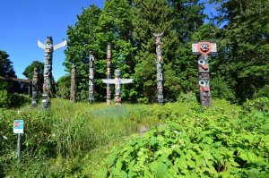 On a terminé cette journée par le Stanley Park car on pouvait le visiter en voiture avec un minimum de marche à pied, nos organismes n’étant plus de première jeunesse ! Il faut se remettre dans le bain des visites non-stop… Le parc est très agréable avec ses 405 hectares et ses 200 kms de sentiers piétonniers, c’est le poumon de la ville et la promenade préférée des habitants de Vancouver. Il est aujourd’hui le 3ème plus grand parc urbain au monde, 10% plus étendu que Central Park à New-York !!! Quant à nous, nous nous sommes contentés de faire de petites balades car la vue sur Vancouver est vraiment très belle.