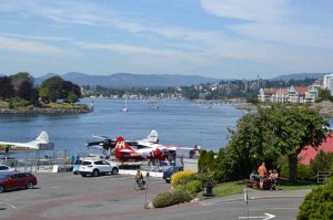 Nous sommes partis ce matin pour continuer notre exploration de Victoria et nous sommes passés par le quartier chinois, tout petit à vrai dire… Nous avons continué en longeant le port où le spectacle est omni présent entre les bateaux bus, les bateaux taxis, les yachts et par-dessus tout, les hydravions qui décollent et atterrissent sans arrêt au milieu de tout ça, je vous assure que c’est assez impressionnant… En plus, c’est vraiment joli et la promenade est du coup fort sympathique ! Nous sommes allés à l’office du tourisme afin d’être sûrs de ne rien rater d’important et nous en sommes repartis avec en poche 2 billets pour faire un tour de « whales watching » (entendez par là « observation des baleines »), prévu pour 15h00. Le temps de rentrer à l’hôtel pour changer d’objectif pour l’un des appareils photos et nous voilà repartis !