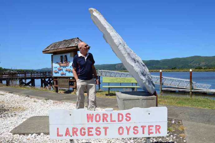 Pour le reste, nous avons suivi la côte depuis Aberdeen jusqu’à Cathlamet, joli petit village où nous faisons étape pour la nuit et nous nous sommes arrêtés de loin en loin pour photographier la côte et tout ce qui nous a paru intéressant. Nous nous sommes arrêtés à Raymond, drôle de nom pour une ville et j’ai tout de suite pensé aux Bidochons ! En fait c’est une adorable petite ville avec des sculptures partout, vous verrez comme c’est mignon. Nous nous sommes aussi arrêtés pour casser une petite croûte dans la « capitale mondiale des huîtres », juste à côté d’une sculpture qui dit que ce sont les huîtres les « plus grosses du monde »… Ben voyons !