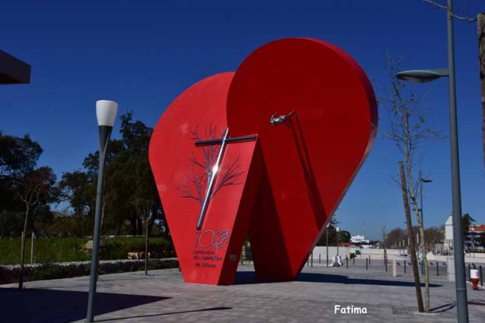 Ce soir, donc, nous sommes de retour à Lisbonne, où nous avons un hôtel très sympa sur l’aéroport : plus commode pour demain matin. Nous avions une bonne centaine de kilomètres à parcourir mais nous avons décidé quand même de faire un petit détour pour aller voir à quoi ressemblait Fatima. Nous avons été étonné par le peu de monde qu’il y avait, nous nous attendions à une foule compacte, vous verrez sur les photos qu’il n’en est rien. Nous avons eu du mal à trouver le sanctuaire, je pense que  ce n’est pas le cas quand on visite Lourdes (eh oui, je n’y suis personnellement jamais allée !). Une autre source d’étonnement a été le peu de magasin de souvenirs religieux alentours. Nous avons vu une seule pénitente à genoux, les pèlerins devant parcourir les 600 derniers mètres de leur périple de cette manière !