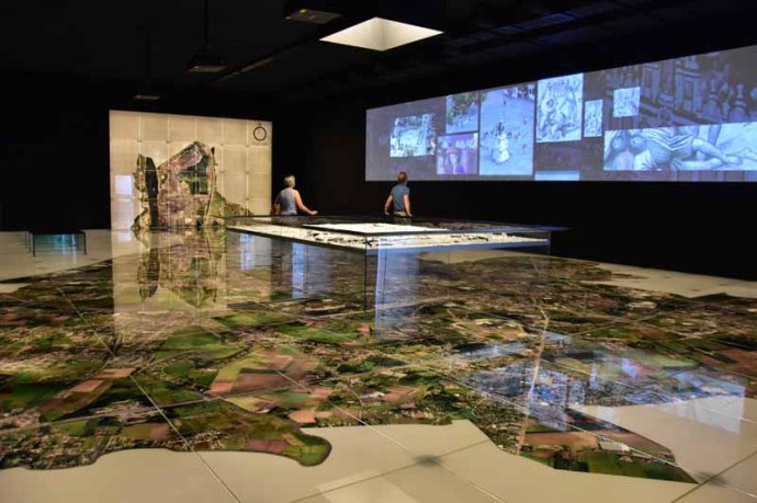 Nous avons décidé de nous diriger vers le Sud, partie que nous n’avons pas encore explorée ! Bien que moins riche en monument que le centre, nous avons repéré un musée qui nous intéresse : le STAM, musée de la ville. Nous nous y rendons à pied en suivant la Lys depuis notre hôtel. Le musée est situé dans l’ancien hôpital rattaché à une abbaye cistercienne. L’histoire de la cité de Gand, des vestiges archéologiques à nos jours, est contée de façon très ludique dans des salles extrêmement bien aménagée. La pièce maîtresse du STAM est la photo aérienne de Gand : 300m² sur lesquels on peut marcher et c’est en partie ce qui nous avait attiré dans ce musée… Nous sommes ressortis après plus d’une heure de visite, ravis de ce choix !