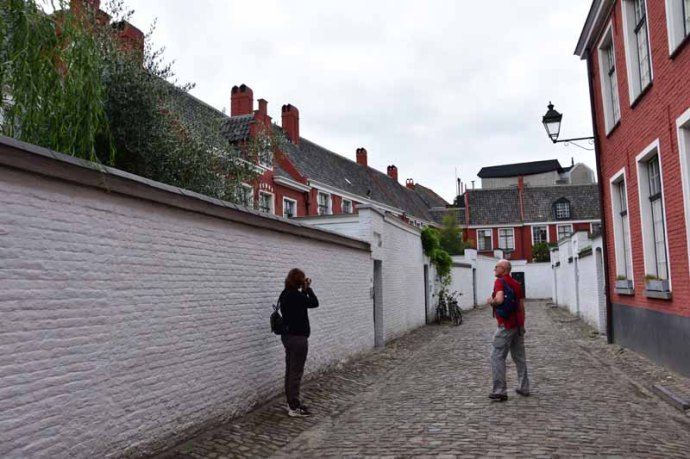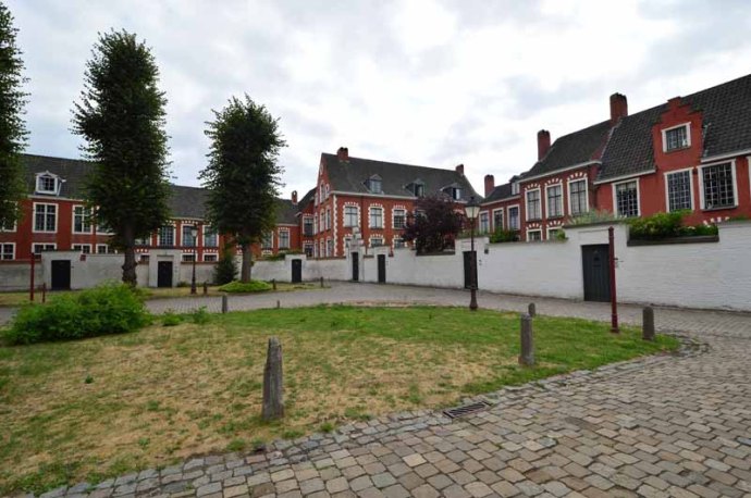 Ce « petit béguinage », fort bien préservé, a été fondé en 1234 par Jeanne de Constantinople et est classé au Patrimoine mondial de l’Unesco. Il a perdu sa dernière béguine en 2008. Ce calme enclos n’a pas changé depuis le 17è siècle. Les petites maisons en brique, précédées de jardinets aux murs blanchis à la chaux, encadrent l’église Notre-Dame-aux-Foins et 2 pâturages. Les maisonnettes sont toujours habitées et je dois dire que si je devais résider à Gand, j’adorerais vivre là ! Cet endroit nous a complètement enchantés… Il y règne un calme incroyable.
