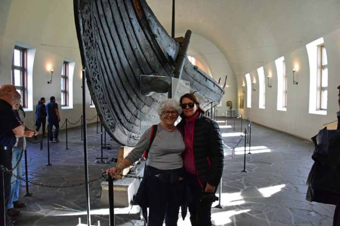 Ce sont les musées que nous avons choisi de visiter. Le musée des bateaux Vikings abrite 3 bateaux miraculeusement conservés et retrouvés sur les rives du fjord d’Oslo. Ils datent des environs de 900. Ces embarcations ont servi de sépultures, après avoir navigué, à de puissants personnages. Les défunts y étaient enterrés accompagnés d’un riche mobilier, de bijoux, d’armes, éventuellement d’animaux et d’autres personnes. C’est probablement  la raison pour laquelle ils ont été retrouvés dans un tel état de conservation puisqu’ils ont été enterrés. Ce fut notre séquence émotion !