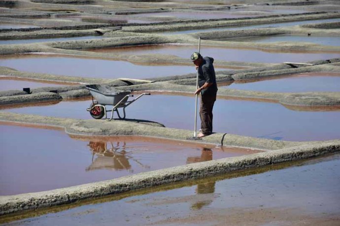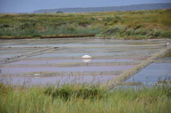 Vint l’heure de notre rendez-vous pour la visite des salines, sous un ciel bleu d’azur donc. Notre guide était très intéressant, il nous a parlé de la faune, de la flore et aussi, bien sûr de la récolte du sel. Très intéressant !
