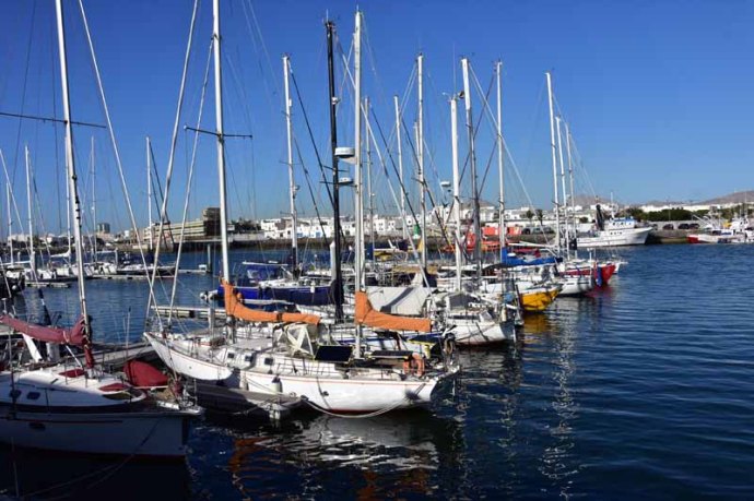 Comme nous devions rendre l’appartement à 10h00 ce matin hier matin, cela nous a laissé presque une journée pour visiter quelques endroits encore inconnus. Tout d’abord le port de plaisance d’Arrecife où beaucoup de yachts (et de beau yachts d’ailleurs) sont amarrés.