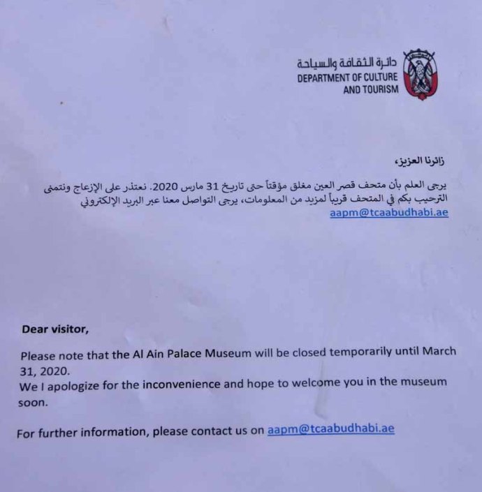 Le palais de Cheikh Zayed a été construit en 1937 pour lui servir de résidence. Il est aujourd’hui transformé en musée, bien entendu fermé comme le reste !