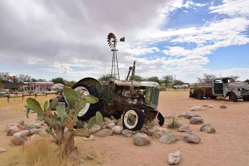 Nous sommes à côté de Solitaire qui porte bien son nom, vous verrez les photos. C’est un peu le Bagdad Café namibien.