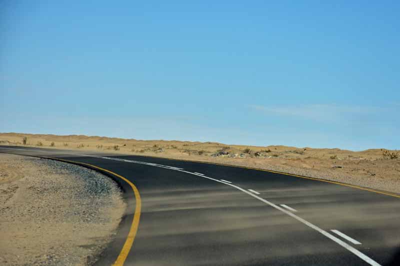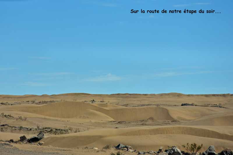 Les paysages sur la route étaient très beaux, le sable balayé par le vent traversait le bitume… On comprend mieux la vitesse à laquelle le sable envahit tout…