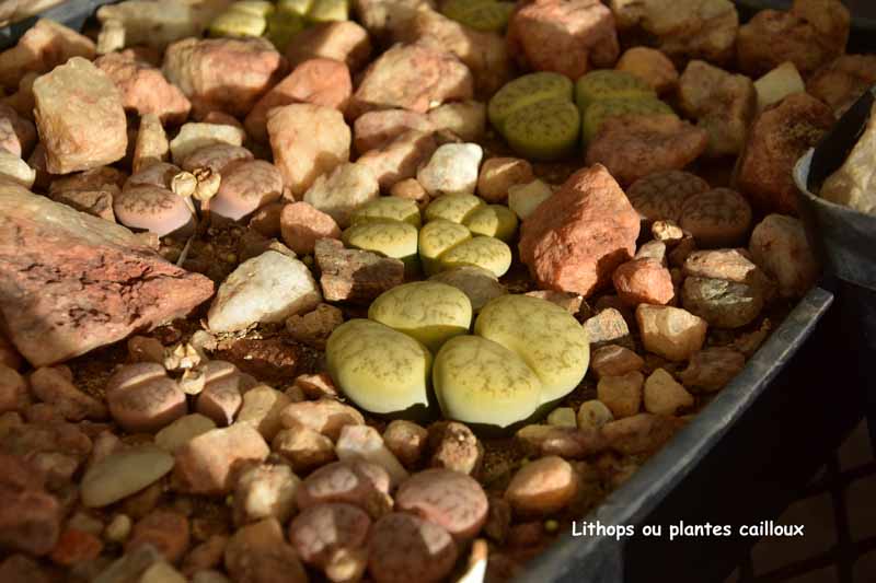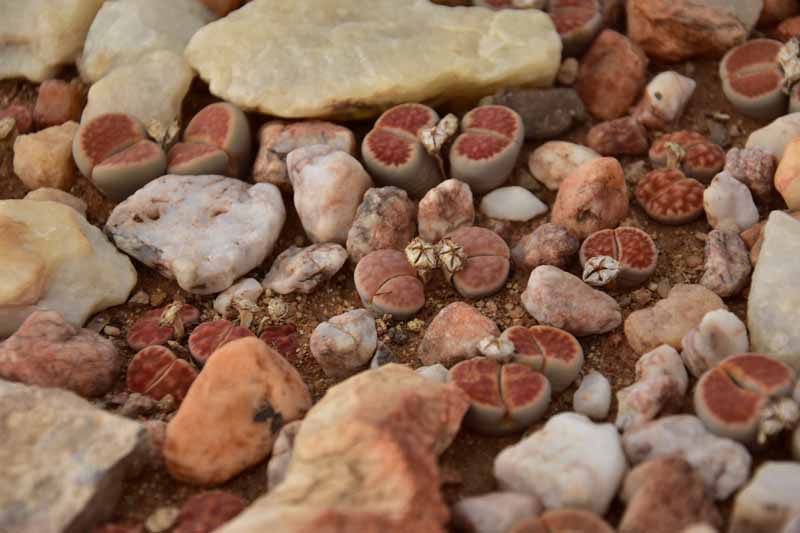 A notre arrivée au lodge, nous avons eu la surprise de découvrir une « pépinière » de lithops, des plantes cailloux extraordinaires qui poussent ici en Namibie dans le sud du pays et dont nous n’avions jamais entendu parler. Très bizarre comme plantes !