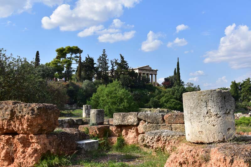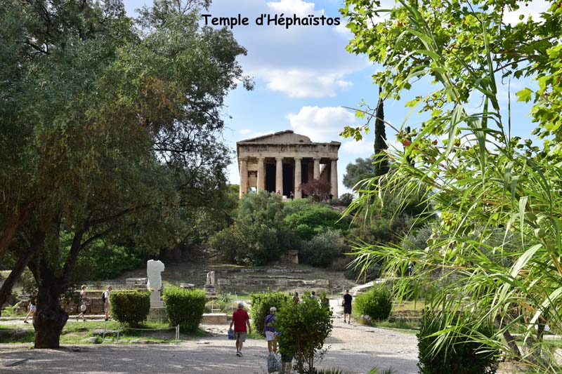 Une fois en bas, nous avons encore eu le courage de visiter l’Agora romaine puis la magnifique Agora antique (avec son temple bien conservé d’Héphaïstos) et tout cela avec une vue superbe sur l’Acropole qui commençait à se colorer dans le soleil couchant.