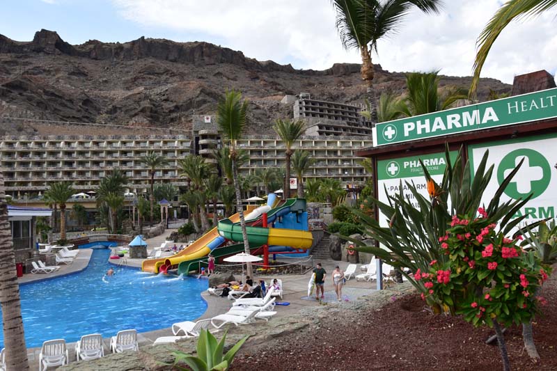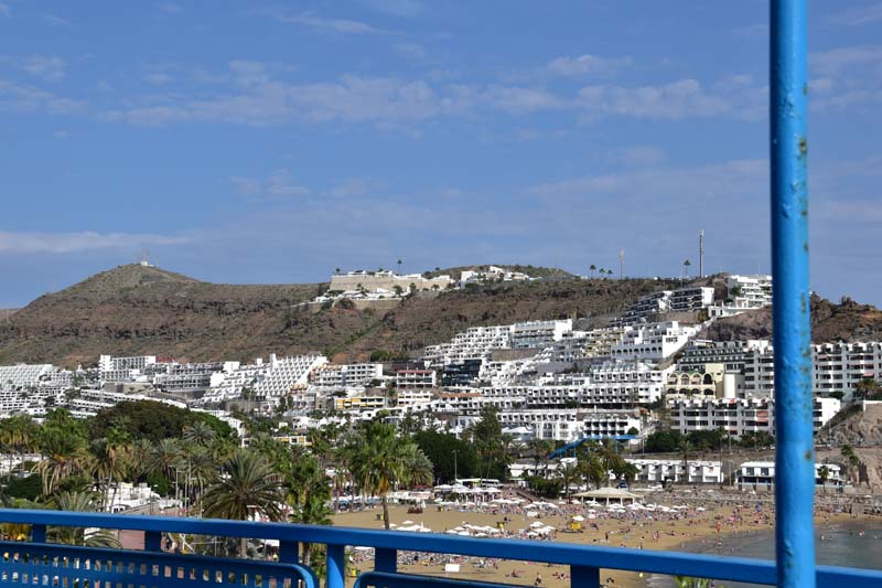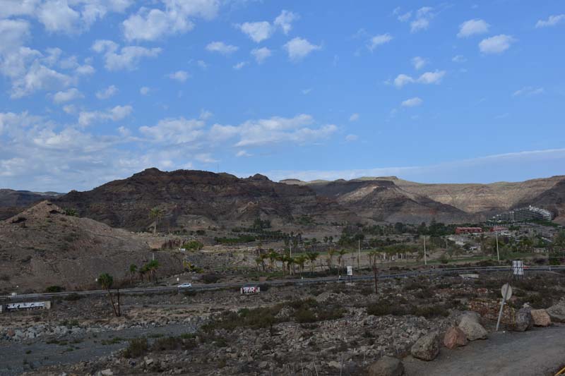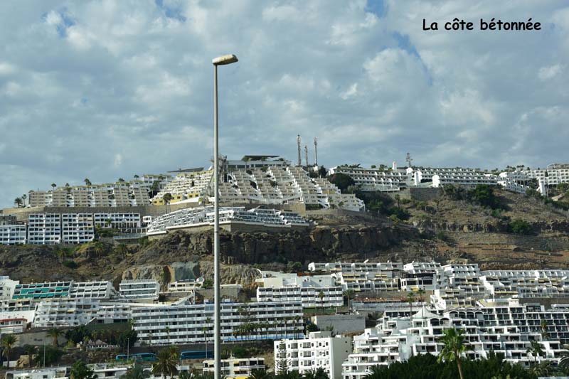 Mais avant d’arriver là, nous avons aussi rencontré le beaucoup moins beau car la côte entre Pasito Blanco et Puerto Mogan est horriblement bétonnée afin de pouvoir entasser (il n’y a pas d’autres mots) les touristes. C’est laid à faire peur (je vous ai fait quelques clichés à travers le pare-brise) et nous avons passé notre journée à nous dire que nous avions fait un excellent choix en nous posant ici, à Pasito Blanco.