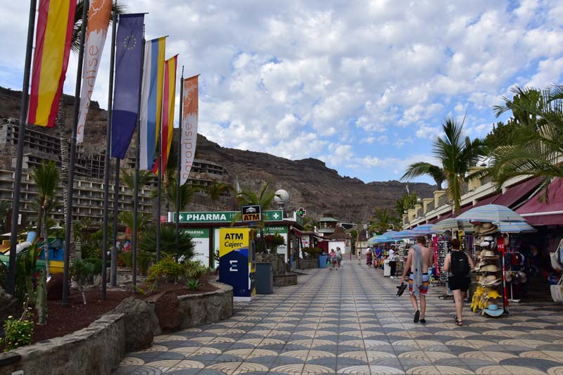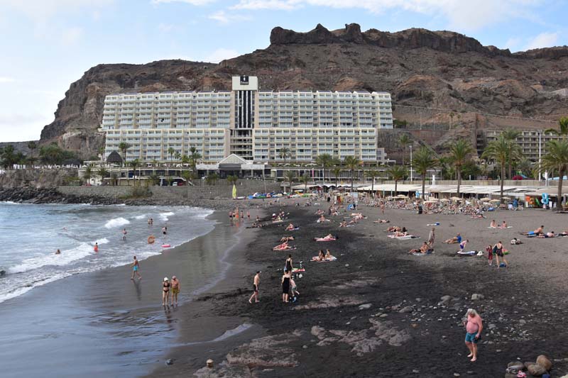 Nous avons tout d’abord fait un stop à Arguineguin où nous avons fait le tour du port, rien de bien attrayant ! Ensuite, nous nous sommes arrêtés à Taurito, « extraordinaire enclave touristique » nous dit le guide (et pour être extraordinaire, ça l’est, mais pas forcément dans le bon sens) avec ses nombreux magasins de souvenirs, sa plage de sable noir, sa « fête à neu neu »… j’en passe et des meilleures. Bref, pour nous, le coin à fuir absolument. Heureusement il en faut pour tous les goûts et nous avons vu de braves gens qui avaient l’air heureux de leur sort !