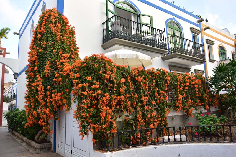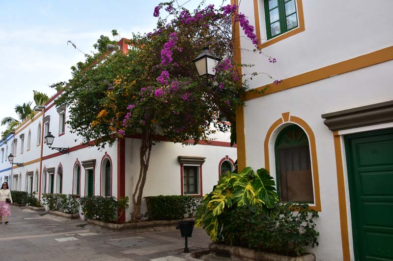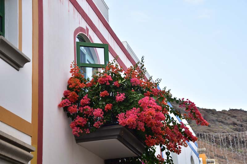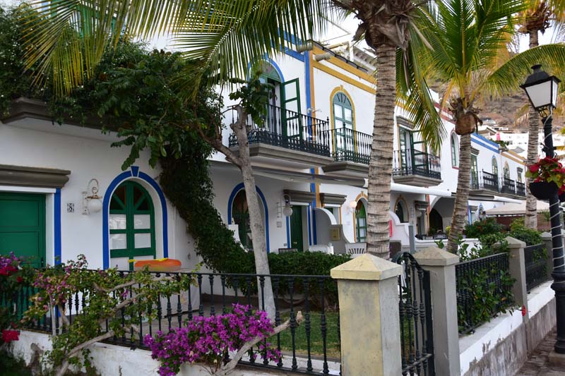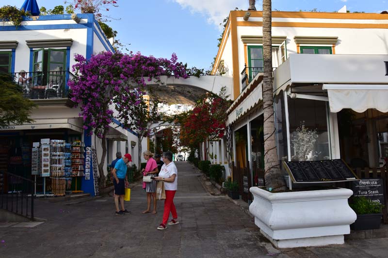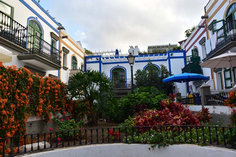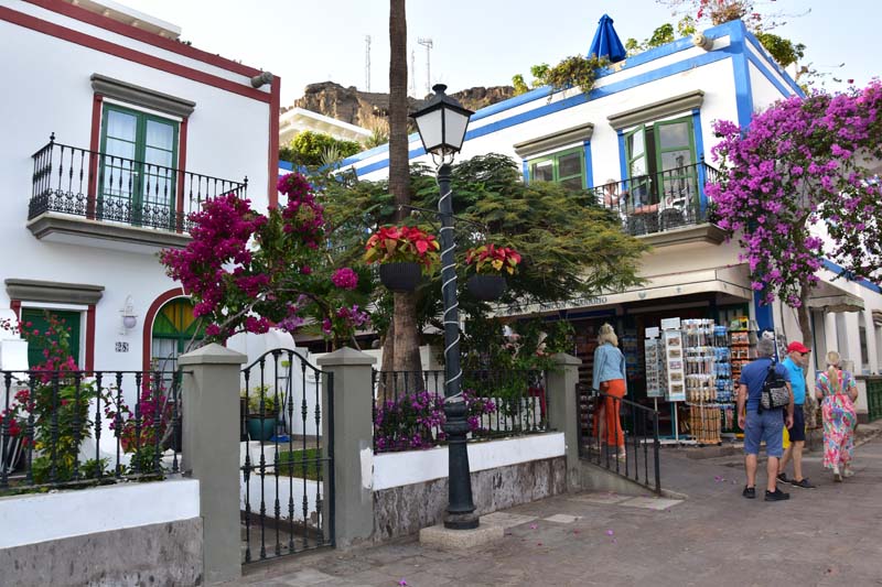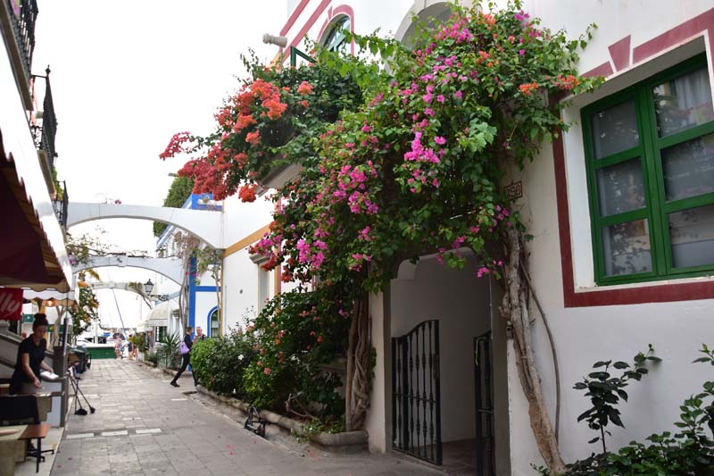 Nous avons choisi d’aller faire un tour à la découverte d’une ville très mignonne et réputée comme telle : Puerto Mogan, un adorable petit port de pêche agrandi en port de plaisance. Elle est connue comme la « Petite Venise », avec ses ruelles ornées de balcons de différentes couleurs et de fleurs (particulièrement des bougainvillées que j’adore) et il est bien agréable d’y flâner.