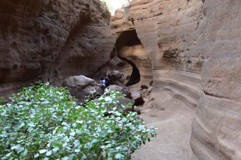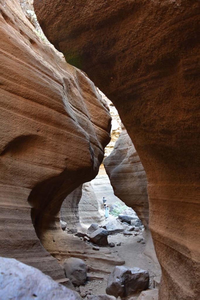 Ce matin, à peine réveillés, nous avons directement enfilé nos vêtements et, après un bon petit déjeuner, nous sommes partis pour découvrir le Barranco de las Vacas… Au passage, nous remercions Mireille qui nous a parlé de ce site et sans laquelle nous n’aurions même pas su qu’il existait… Il n’est pas mentionné dans les guides et pourtant, il y a du monde pour aller le visiter ! Le bouche à oreille doit bien fonctionner.