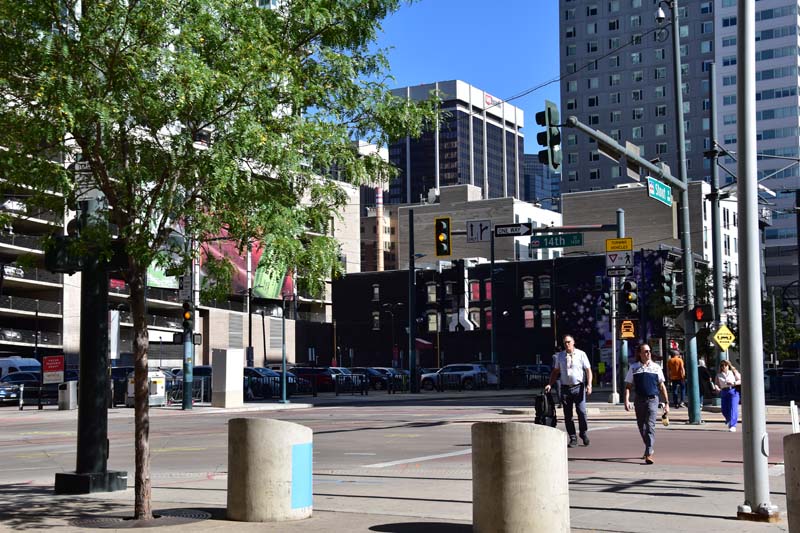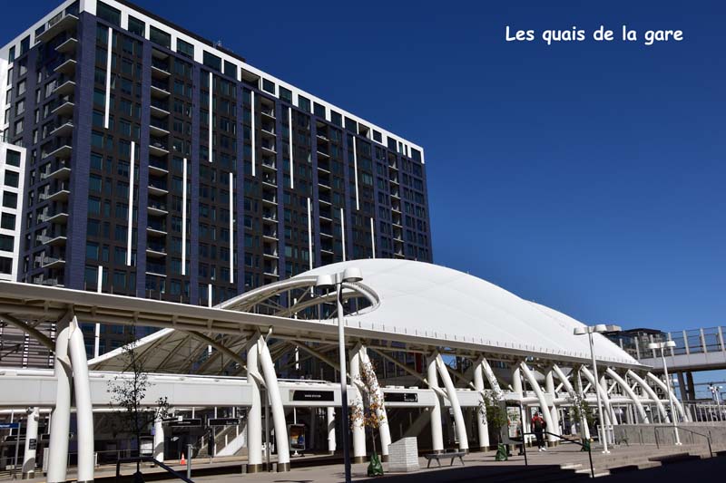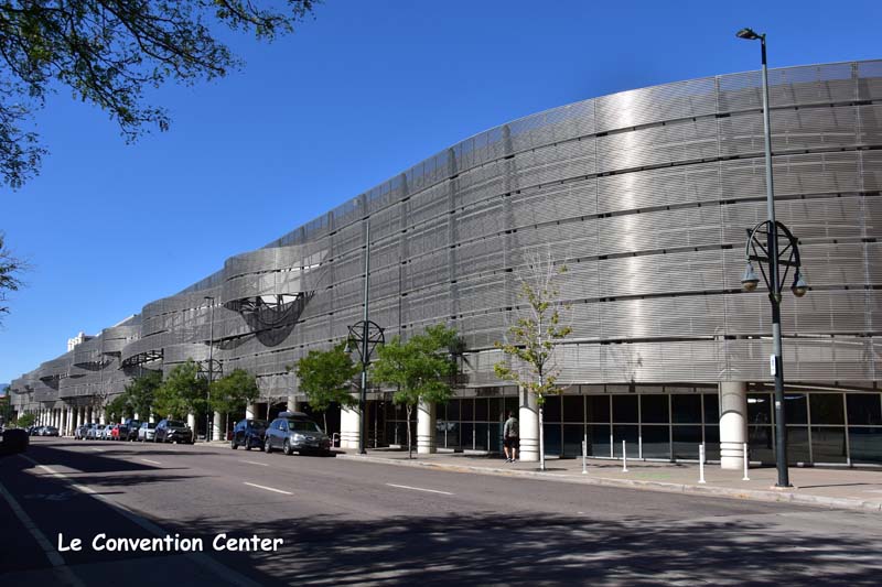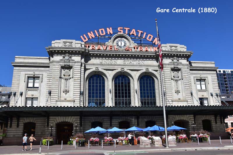 Reposés, nous avons fait le chemin en sens inverse, mais en prenant une autre rue qui nous faisait passer le long du stade de baseball. C’est un bel et grand édifice dans lequel nous avons essayé de rentrer mais ce n’était pas possible, c’est sur réservation et ça ferme à 14h… Une autre fois peut-être ! Denver a mis en place un service de bus gratuit qui fait une boucle en descendant la 17ème rue et en remontant la 15ème… Nous l’avions repéré et arrivés en haut de la 17ème, nous avons pris cette navette qui nous a conduit, sans fatigue, jusqu’à proximité de notre hôtel… Ouf ! Nous avons quand même marché au moins 8km sous la chaleur, et l’on sent bien que nous sommes en fin de voyage : la fatigue commence à se faire sentir !
