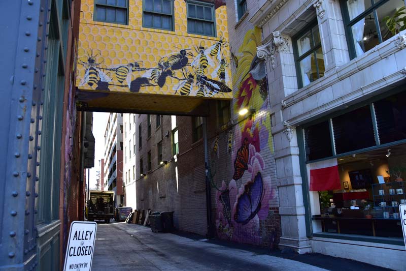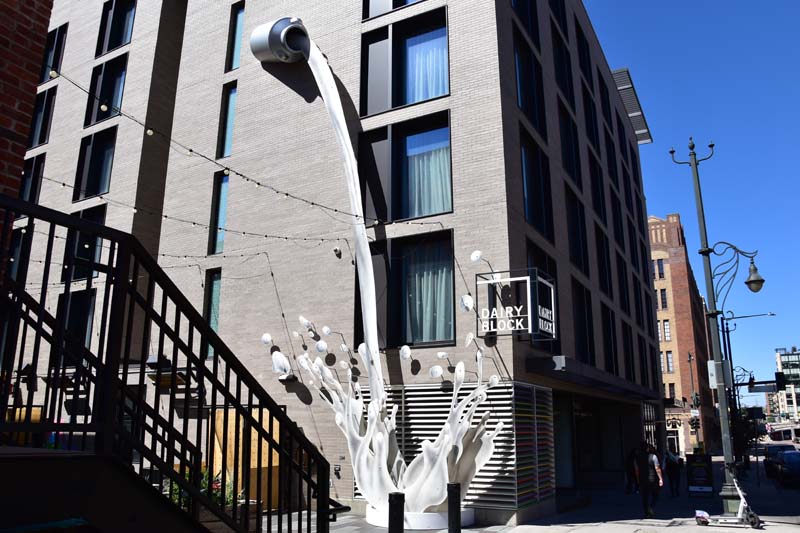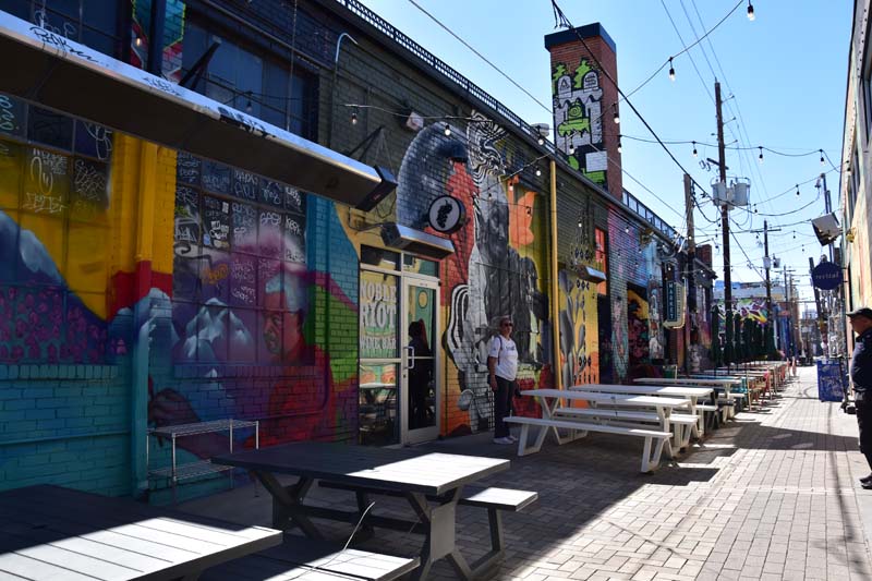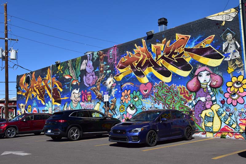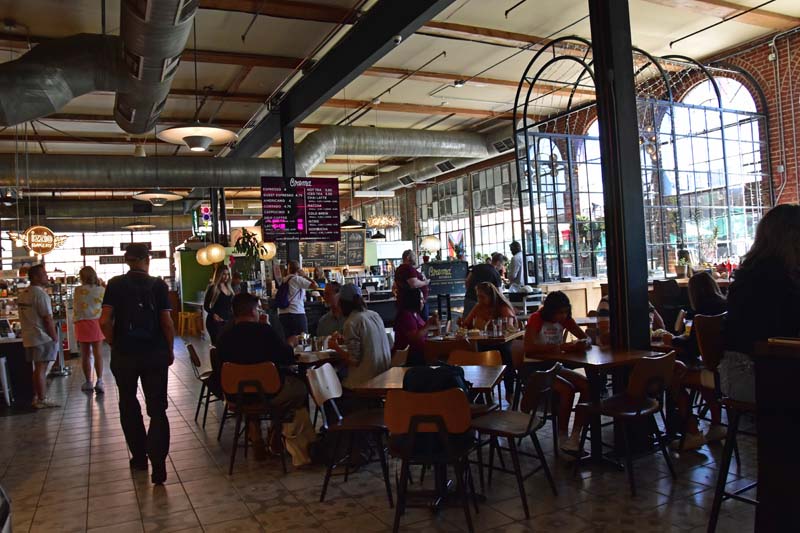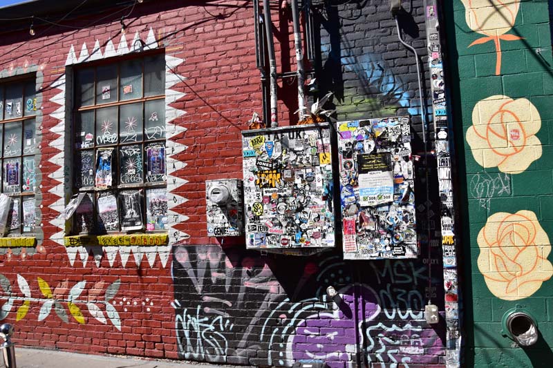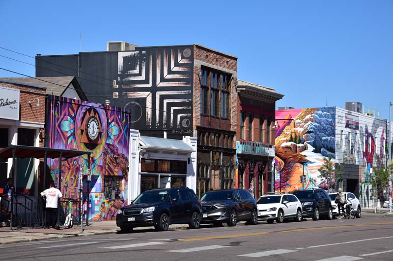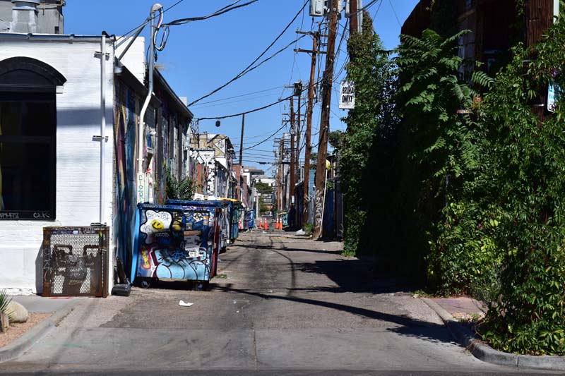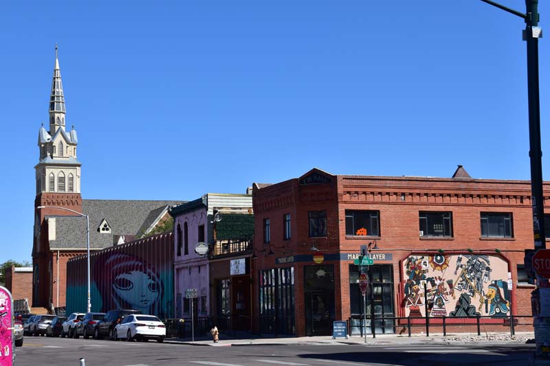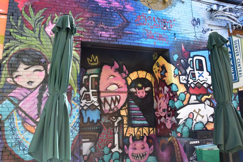 C’est donc par la 17ème rue que nous sommes allés jusqu’à la gare, Union Station, qui se situe dans le quartier de Low Downtown. Elle a ouvert ses portes en 1881. La structure d’origine a été détruite par un feu en 1894 et fut ensuite reconstruite dans le style Beaux-Arts. Le hall est agréable et l’on en a profité pour prendre un peu de repos après nos 2km500 de flânerie. Nous nous sommes adressées à un vieux monsieur, qui était manifestement là pour proposer des « tours » et des excursions, pour savoir s’il y avait des bus qui nous permettent de nous rendre dans le quartier du Street Art… Il a été vraiment adorable et a cherché partout pour nous trouver quelque chose (mais qui était tellement compliqué que nous avons finalement marché🚶‍♀️‍➡️). Mais il nous a donné une carte détaillée et surtout, nous a indiqué des endroits sympa à voir… dont le Dairy Block (le « bloc » du laitier) que nous avons adoré. C’est une petite ruelle très animée et décorée de partout !