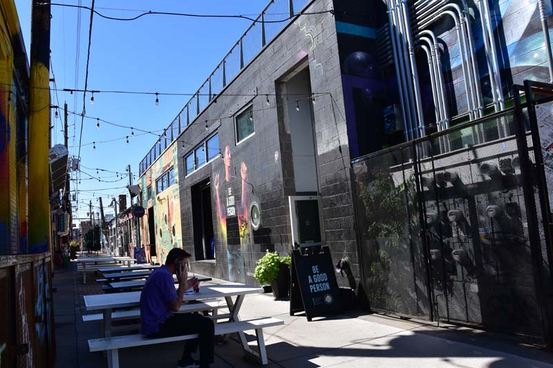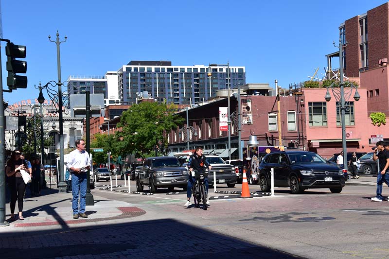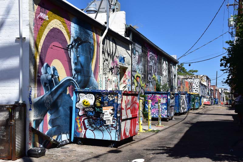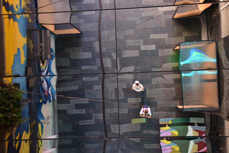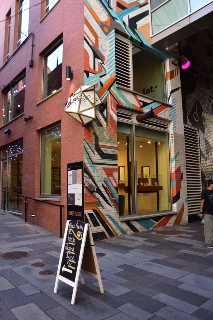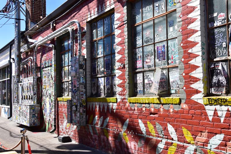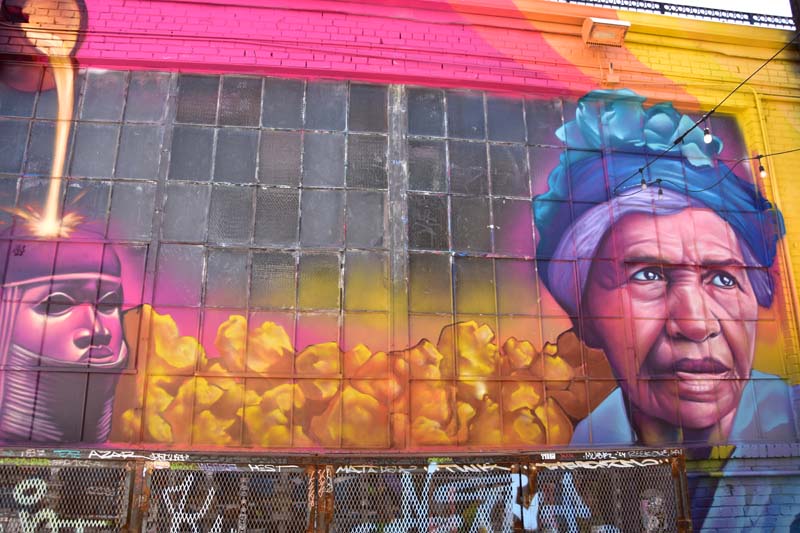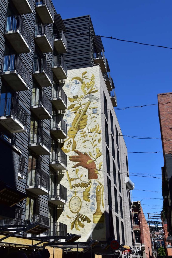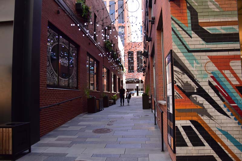 C’est donc par la 17ème rue que nous sommes allés jusqu’à la gare, Union Station, qui se situe dans le quartier de Low Downtown. Elle a ouvert ses portes en 1881. La structure d’origine a été détruite par un feu en 1894 et fut ensuite reconstruite dans le style Beaux-Arts. Le hall est agréable et l’on en a profité pour prendre un peu de repos après nos 2km500 de flânerie. Nous nous sommes adressées à un vieux monsieur, qui était manifestement là pour proposer des « tours » et des excursions, pour savoir s’il y avait des bus qui nous permettent de nous rendre dans le quartier du Street Art… Il a été vraiment adorable et a cherché partout pour nous trouver quelque chose (mais qui était tellement compliqué que nous avons finalement marché🚶‍♀️‍➡️). Mais il nous a donné une carte détaillée et surtout, nous a indiqué des endroits sympa à voir… dont le Dairy Block (le « bloc » du laitier) que nous avons adoré. C’est une petite ruelle très animée et décorée de partout !
