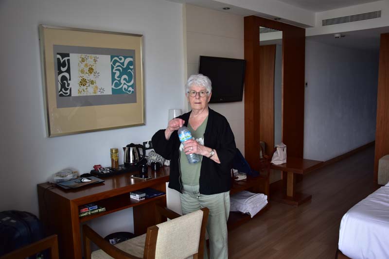 Nous qui pensions en avoir fini avec les galères !!! comme la plupart d’entre vous le sait, l’opération de Gilbert de l’épaule qui a un peu mal tourné, Blan qui doit se faire opérer des yeux, je me suis mise aussi à faire des miennes ! Pour commencer, douleurs persistantes côté gauche, vraiment très douloureuses. Après plusieurs jours, nous nous sommes décidés à voir un médecin (heureusement que nous sommes dans un hôtel 4 étoiles, il a suffit de s’adresser à la réception et moins d’une heure après, un médecin arrivait dans la chambre). Elle a soupçonné un calcul rénal et après un passage dans son cabinet, une injection et des médicaments, nous sommes rentrés un peu rassurés par le fait de savoir ce qui provoquait ces douleurs. Elle nous a demandé de venir le lendemain pour vérifier comment ça allait et vu le sang toujours présent dans les urines et la souffrance toute la nuit, elle nous a envoyé à l’hôpital. 4 heures après notre arrivée et une facture de 1500 euros – sans compter les 300 euros payés au médecin ici – le diagnostic n’a pu être vraiment confirmé, le calcul s’étant évacué probablement tout seul (rien de trouvé au scanner). Il est vrai que les grosses douleurs ont disparues mais reste une douleur en frôlant la peau du même côté, qui est apparue (en plus du reste !) il y a plusieurs jours… Ce matin, des plaques rouges, douloureuses, sont apparues, qui nous font penser à un zona… Comme nous devions rendre compte au médecin du petit séjour à l’hôpital, je lui ai montré ces plaques qui lui font aussi penser à la même chose… Je dois donc retourner demain matin pour confirmation du diagnostic si des pustules apparaissent !!! J’espère qu’elle va nous faire un prix d’amis parce que ce voyage commence à nous coûter très cher 😰. Bref, vous l’aurez compris, notre séjour qui devait nous requinquer, devient un peu cauchemardesque… Mais on ne va quand même pas trop s’appesantir sur notre sort, après tout, nous sommes à l’hôtel, il fait beau entre les gouttes, ce qui nous permet quand même de nous balader, il suffit de choisir son moment 😂!