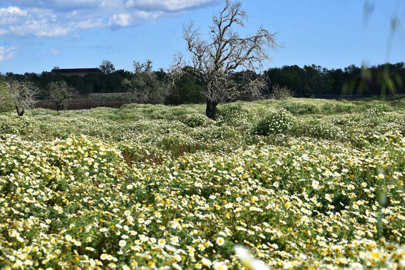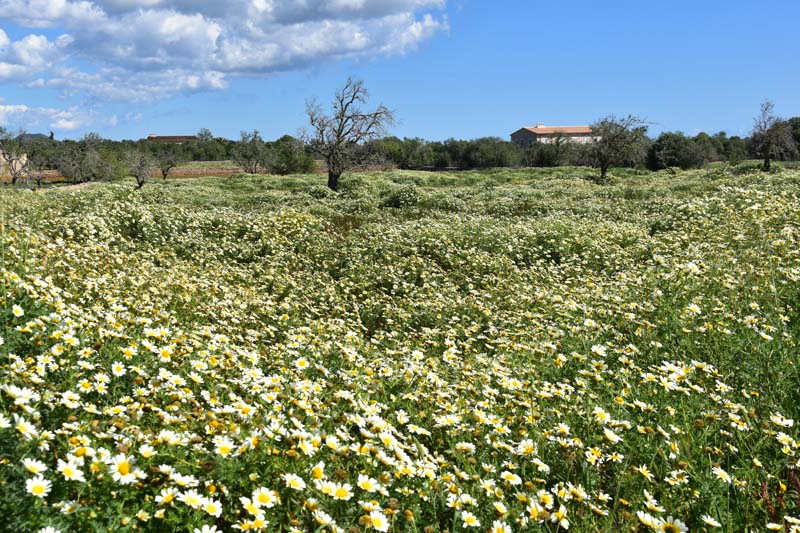 Nous avons pris une jolie route bordée de champs incroyablement fleuris, c’est magnifique. Contrairement à nos autres séjours qui étaient plus tardifs dans la saison, nous ne voyons que très peu de coquelicots et la dominante couleur est jaune et blanc !