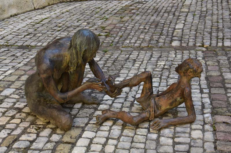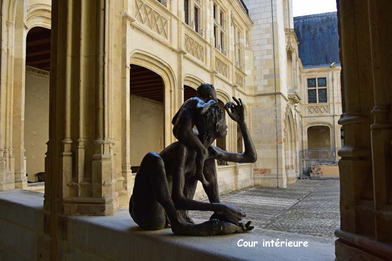 À Bourges, impossible de passer à côté de Jacques Cœur. Au moyen-âge, ce berruyer avait le vent en poupe ! Il est devenu en quelques décennies l’homme le plus riche du royaume et l’un des plus influents conseillers du roi de France Charles VII. Pour asseoir son statut et sa fortune, il se fit construire une « Grande Maison » à Bourges. Malheureusement, il tomba en disgrâce à cette période et n’a jamais pu habiter ce Palais… C’est un édifice magnifique que nous avons beaucoup apprécié ! De plus, il est merveilleusement mis en valeur grâce aux sculptures de Fanny Ferré (en bronze et en terre cuite) qui font l’objet d’une exposition permanente. J’ai essayé de vous renseigner les photos au mieux !