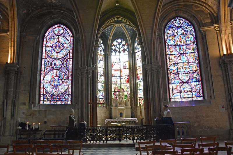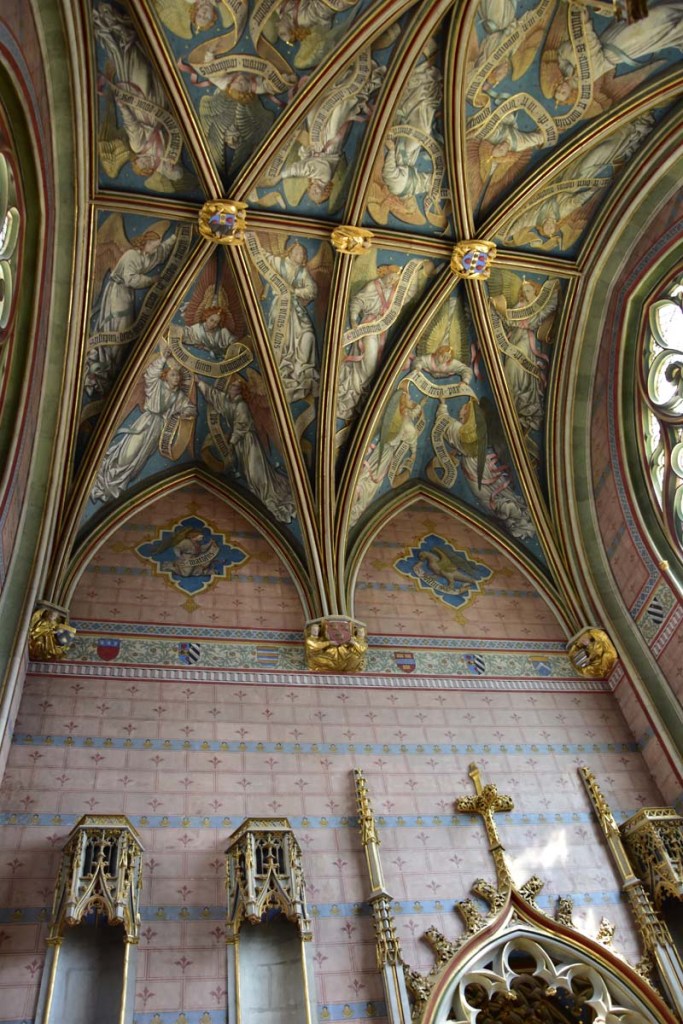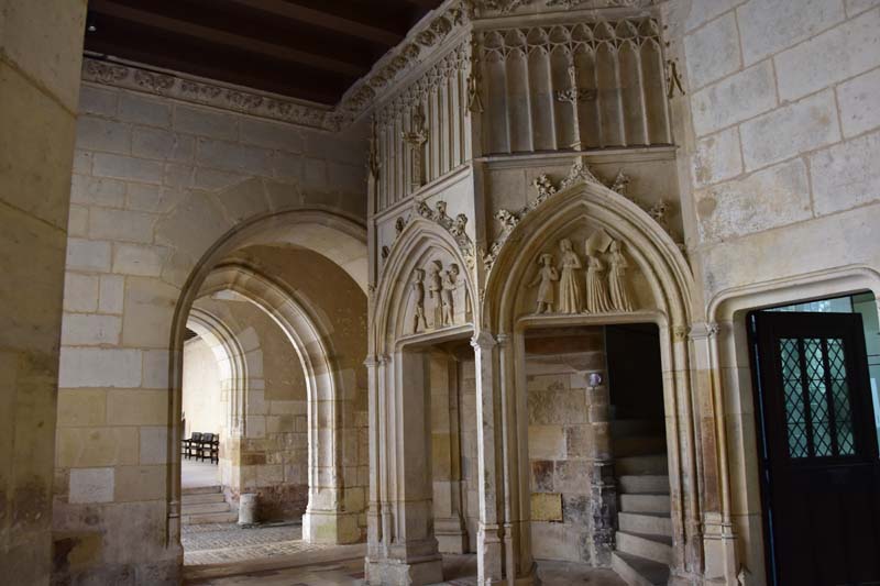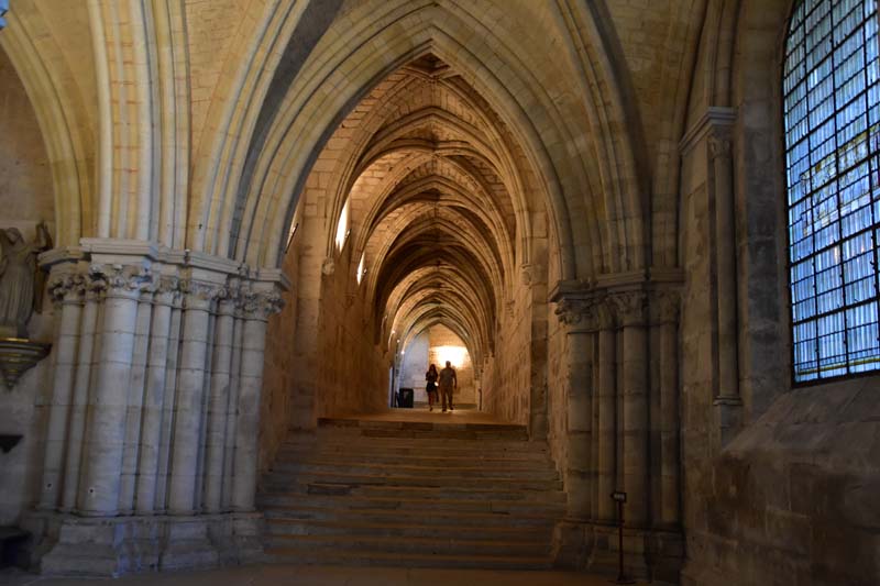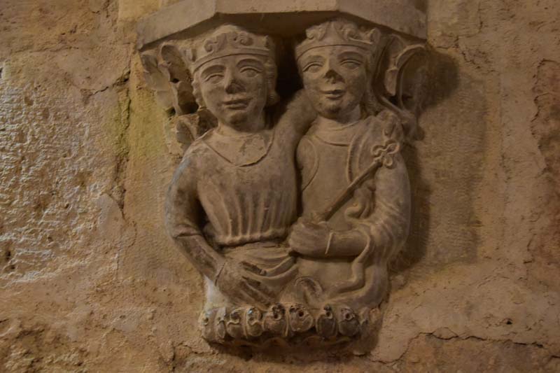 Il y a tout de même une petite anecdote que j’aimerais vous conter… Dans la galerie menant à la crypte, il y a deux culs-de-lampe (éléments en saillie sur un mur supportant une charge – ça c’est très technique !!!) très probablement émanant de sculpteurs facétieux. L’un représente une belle paire de fesses probablement destiné à montrer le mécontentement des ouvriers qui étaient payés avec beaucoup de retard et l’autre, la Reine portant le sceptre royal ce qui voulait dire que c’était la Reine qui portait la culotte… Est-ce que cela a vraiment changé de nos jours ? 😂