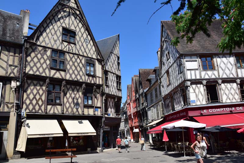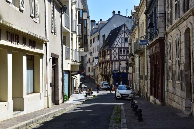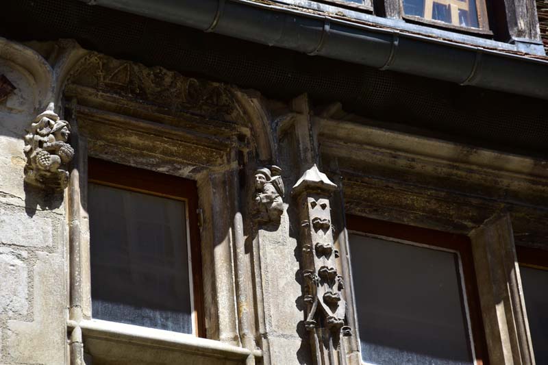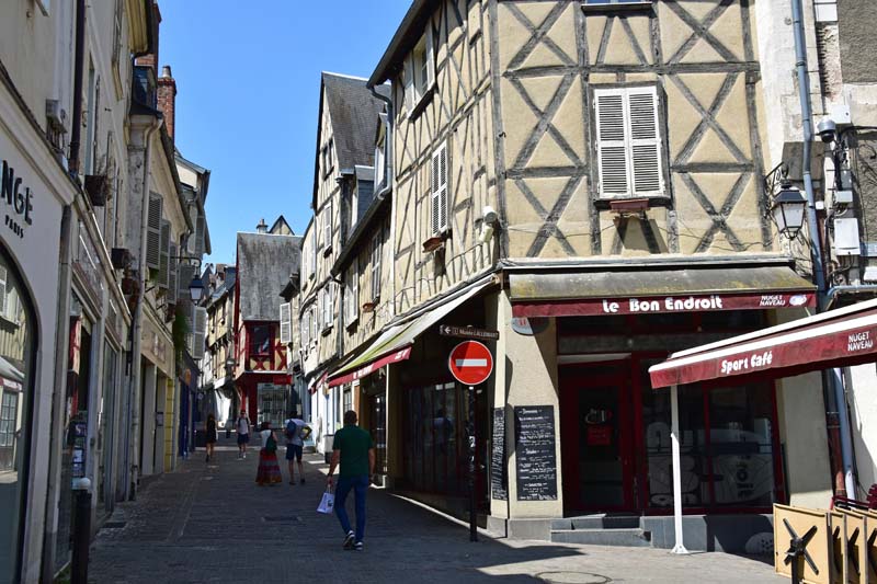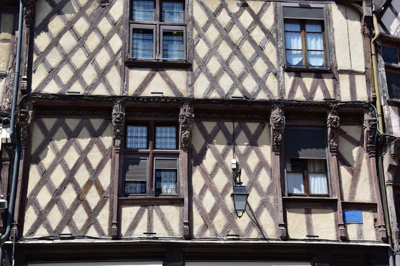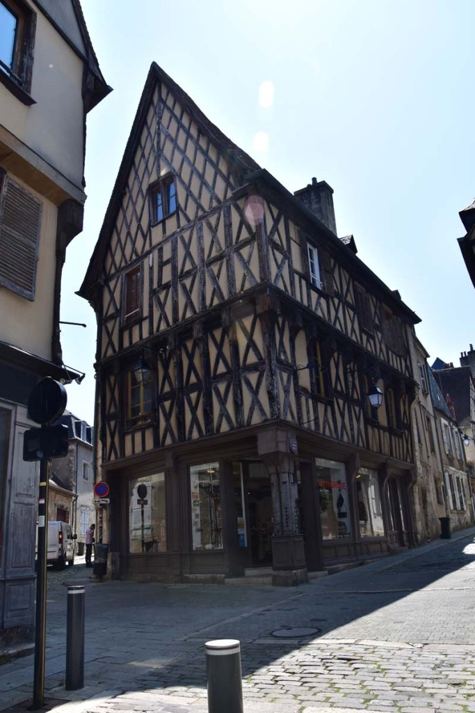 Nous avions opté pour un billet jumelé (plus intéressant que d’acheter les billets séparément – il n’y a pas de petites économies😉) avec la visite guidée de la crypte de la cathédrale qui se fait à certaines heures, la plus proche pour nous étant 14h30 (il était environ 11h15 quand nous avons terminé la visite du Palais). Cela nous laissait tout le temps pour continuer notre circuit jusqu’au Centre Historique. Très préservé, il est orné de plus de 400 maisons à pans de bois, d’hôtels particuliers Renaissance (comme d’habitude, avec notre veine, beaucoup de monuments sont en travaux de restauration !), ou encore des vestiges du rempart gallo-romain. Un régal pour les yeux ! Nous avons déambulé dans ces jolies rues en prenant notre temps (et beaucoup de plaisir) jusqu’à nous retrouver aux abords de la Cathédrale St Etienne.