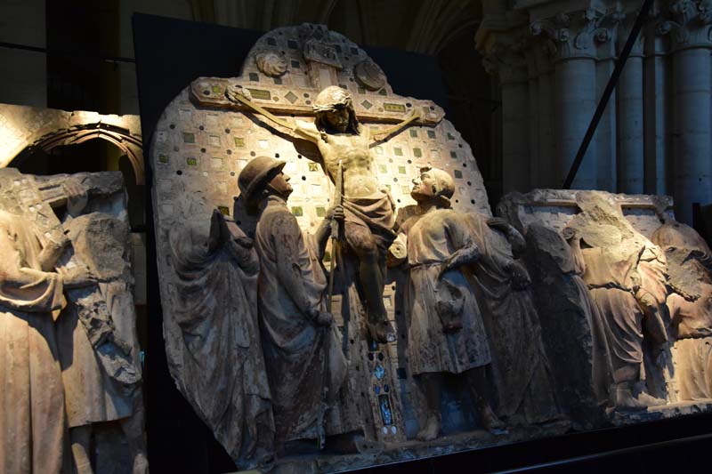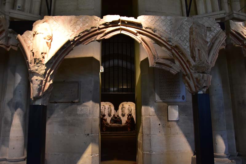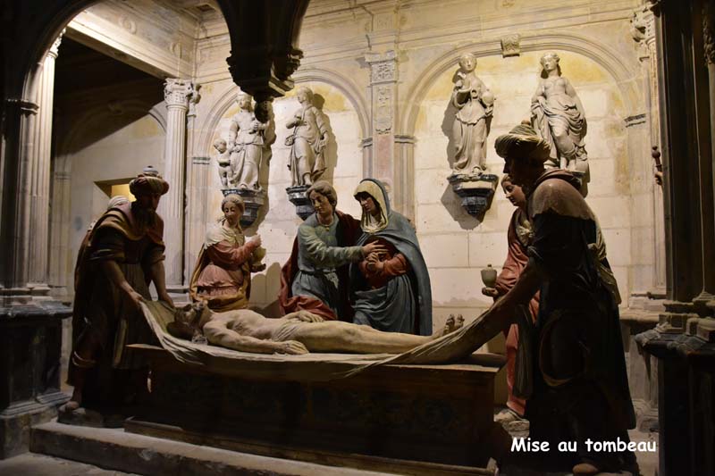 L’heure de notre visite guidée de la crypte arriva au terme de notre visite de l’église. En fait, le nom de crypte est impropre puisqu’elle n’est pas enterrée… Il s’agit plutôt d’une église « basse » qui abrite la 1ère crypte romane où étaient exposées les reliques de Saint-Etienne, une mise au tombeau d’époque Renaissance dans la rotonde et les fragments du célèbre Jubé du XIIIème siècle qui séparait le chœur et la nef. La crypte devait permettre l’élévation du chœur au niveau voulu.