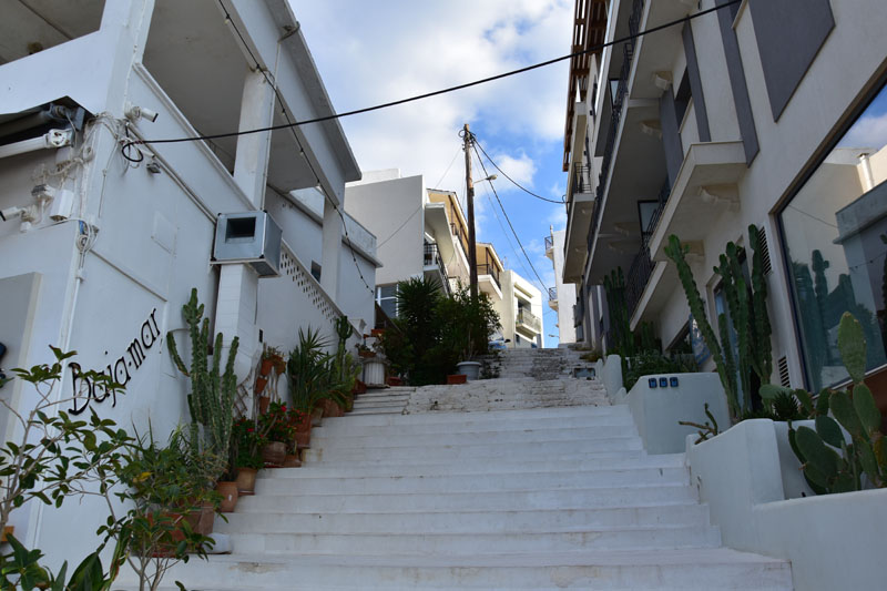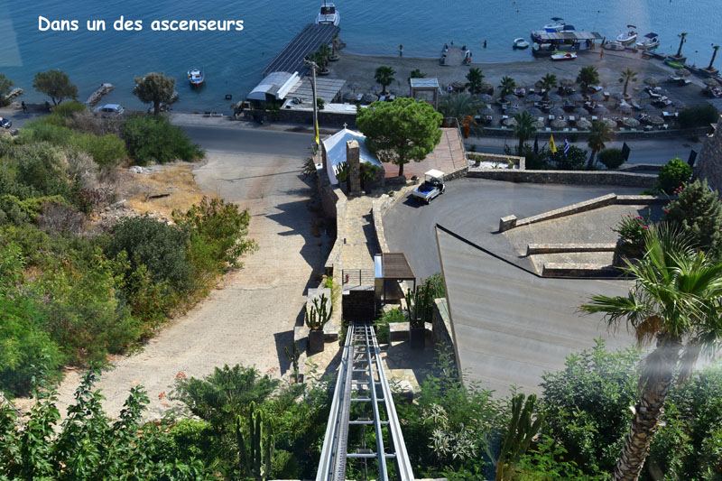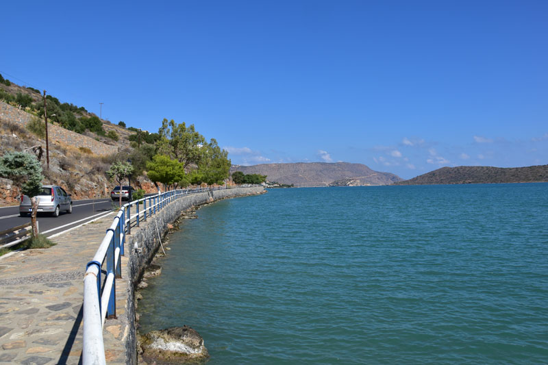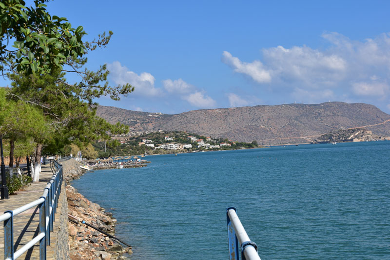 Ce matin, après une très bonne nuit et un non moins bon petit-déjeuner, nous sommes partis en balade le long du bord de mer jusqu’à l’entrée d’Elounda, éloignée d’environ 2km. Nous sommes partis de la plage privée de l’hôtel (bien sûr, en empruntant un ascenseur !), il faisait bon, le ciel et la mer étaient bleus et ce fut un vrai régal.
