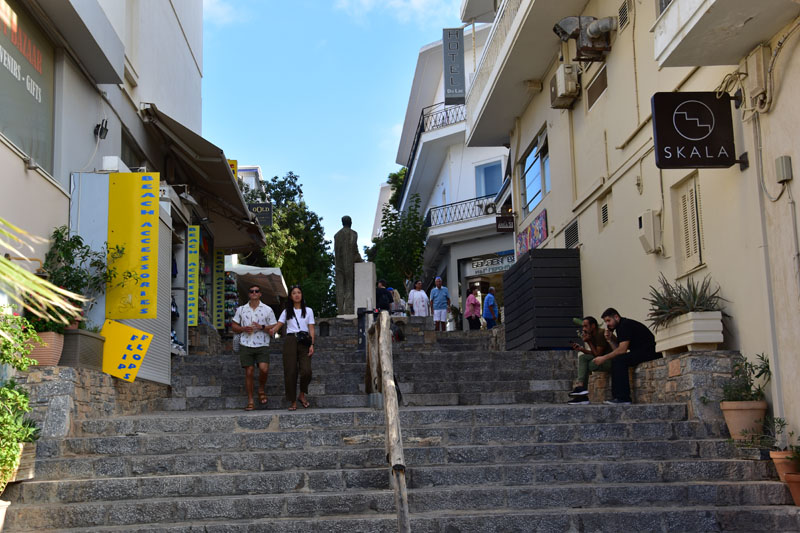 Après un peu de repos dans notre chambre, nous avons pris la voiture et sommes partis visiter Agios Nikolaos, qui se situe à environ 15 km d’ici. C’est le chef-lieu du district régional de Lassithi. Nous nous sommes baladés le long du port et dans ses ruelles piétonnes puis bien sûr autour du petit lac de Voulismeni, que les anciens pensaient sans fond mais qui a en réalité 65 mètres de profondeur ! Nous nous sommes bien régalés…