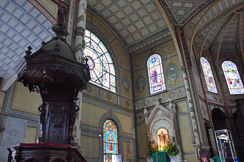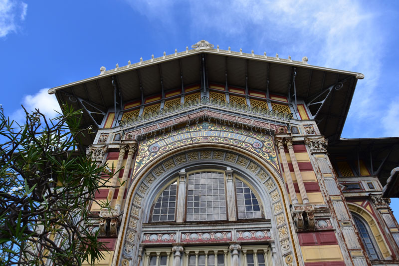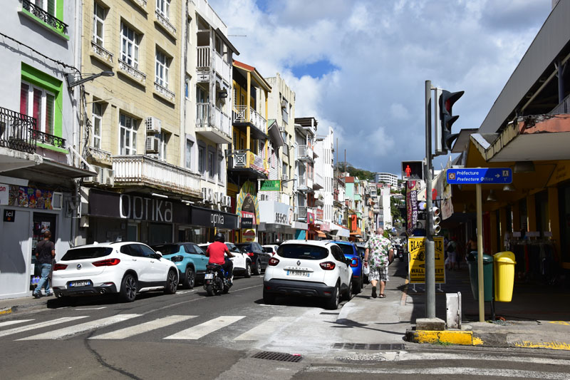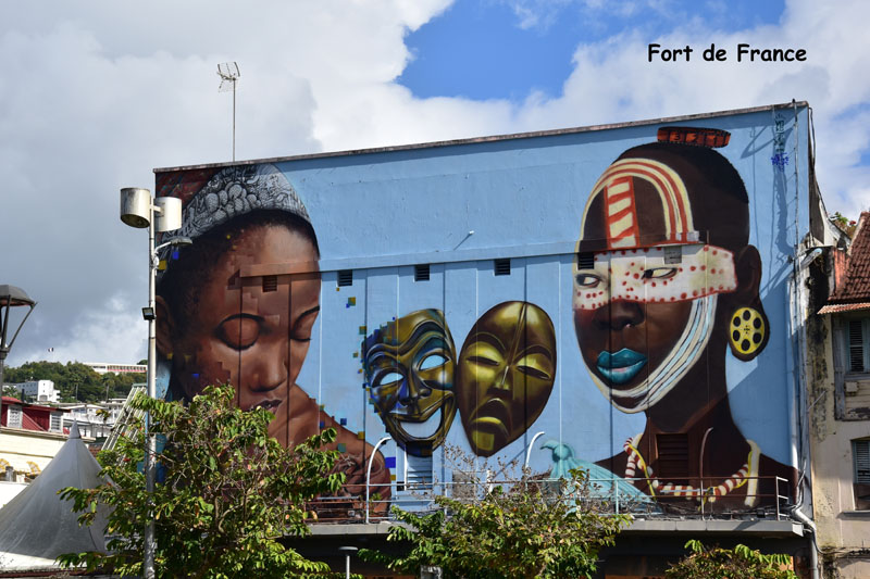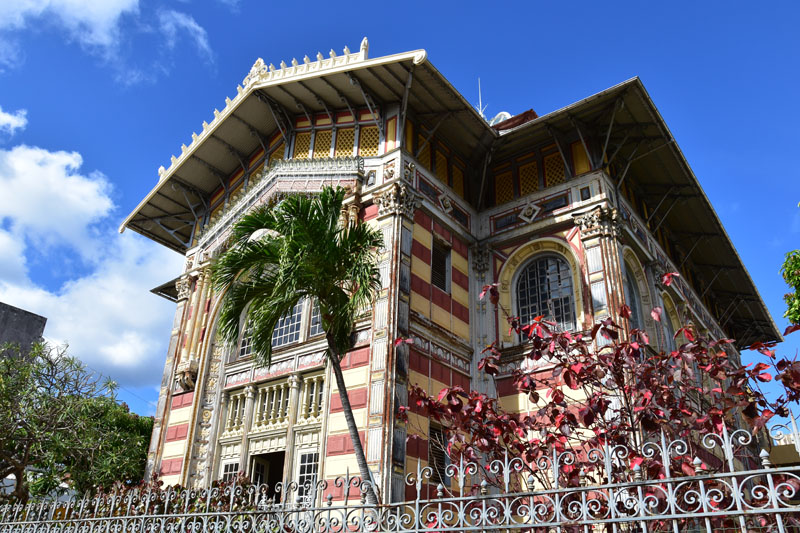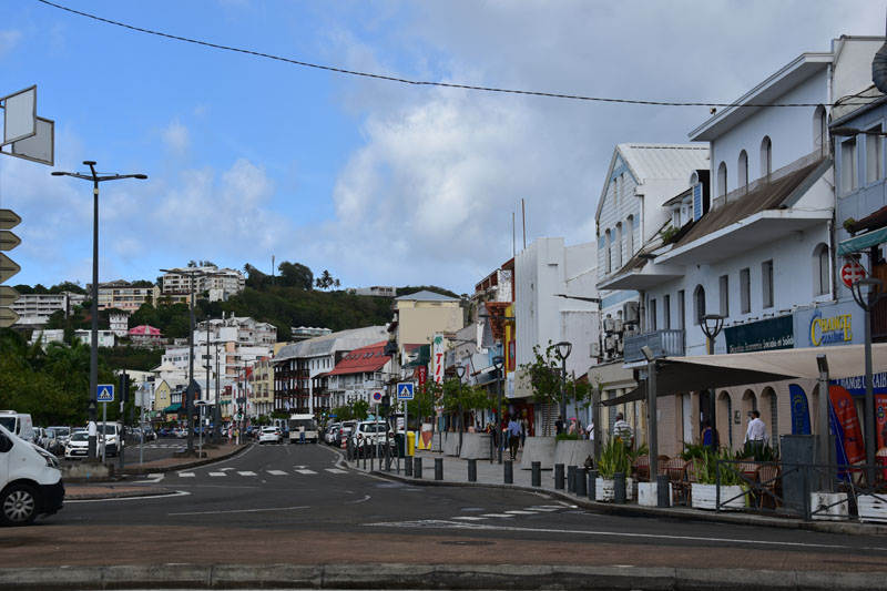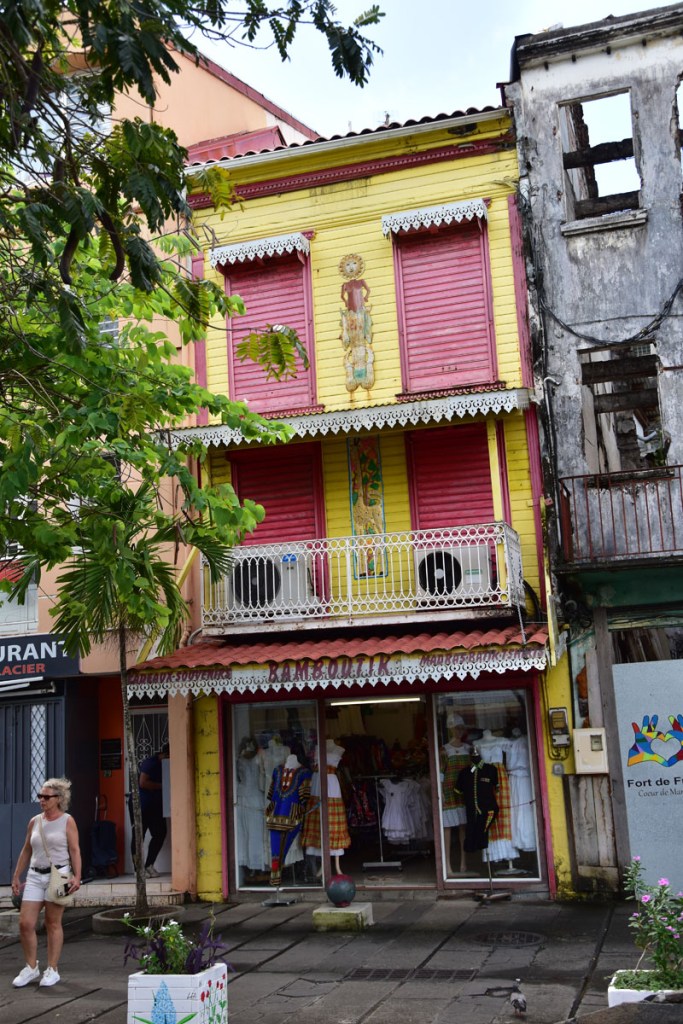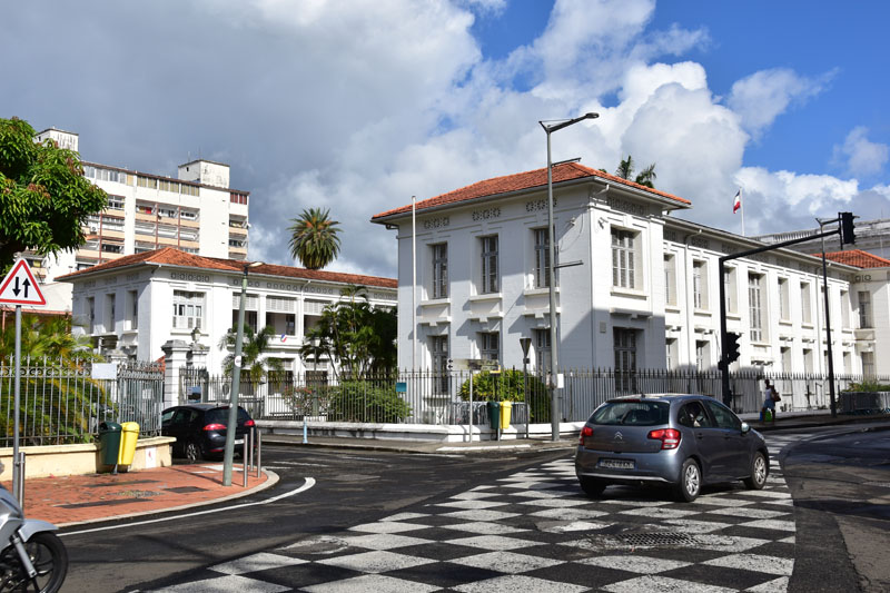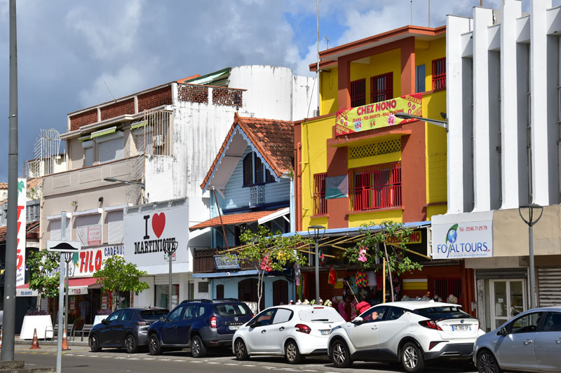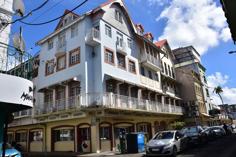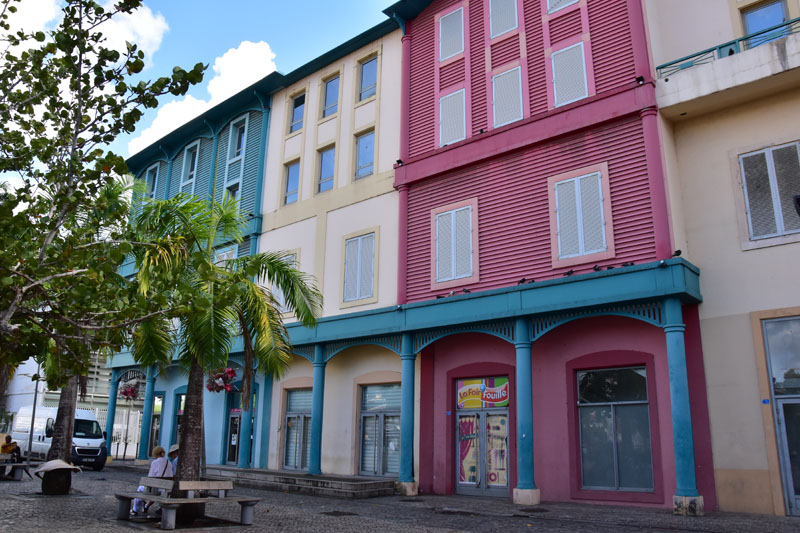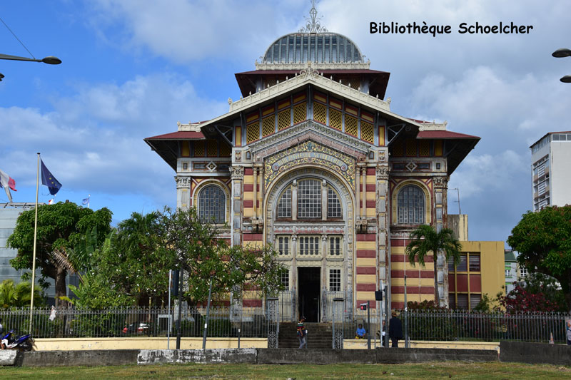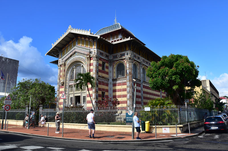 Fort de France est lovĂ©e au cĆur de la baie des Flamands, au bord de la mer des CaraĂŻbes et au pied des pitons du Carbet. Les beaux Ă©difices coloniaux et les maisons traditionnelles sont concentrĂ©s pour la plupart dans les rues du centre historique. C’est tout naturellement lĂ que nous nous sommes dirigĂ©s et avons commencĂ© notre dĂ©couverte par la magnifique bibliothĂšque Schoelcher. PrĂ©sentĂ© Ă l’Exposition universelle de Paris, en 1889, l’Ă©difice de Pierre-Henri Picq, fut expĂ©diĂ© et remontĂ© Ă Fort-de-France en 1893… incroyable exploit ! Juste Ă proximitĂ©, le pavillon Bougenot (1887) abritait, sous le rĂ©gime de Vichy, le siĂšge de propagande de l’amiral Robert.