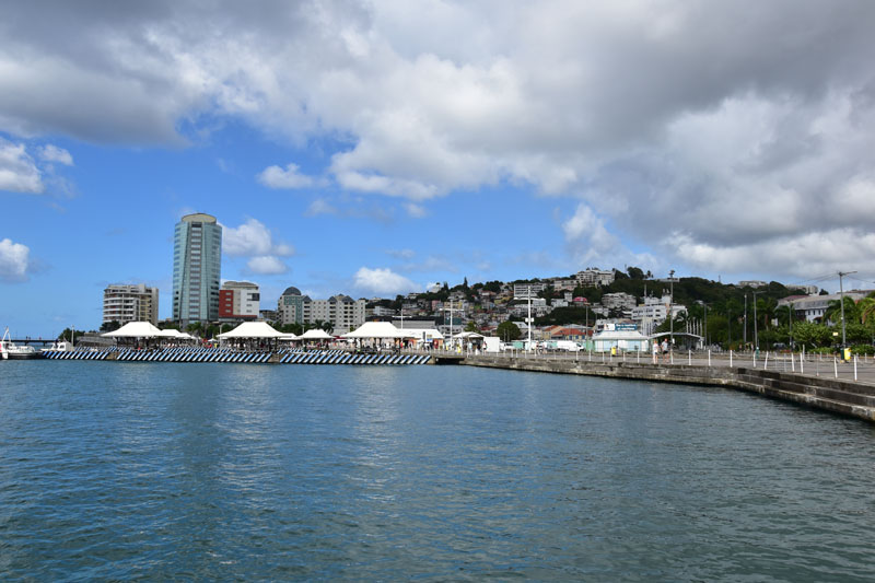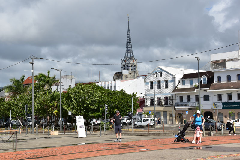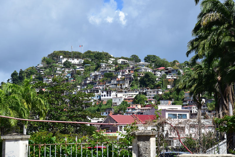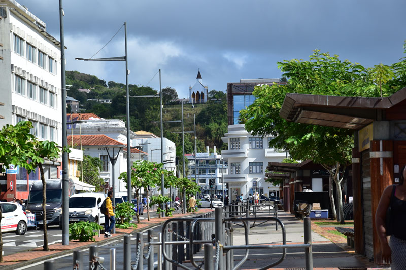 Comme je ne vous l’avais pas dit hier (đ), nous nous sommes dĂ©cidĂ©s pour la visite de Fort de France… Bien Ă©quipĂ©s de parapluies (nous avons essuyĂ© une Ă©norme averse juste avant de se lever), nous sommes donc partis de bonne heure pour cette visite. MalgrĂ© tout, et c’est assez incroyable, les bouchons sont partout… et Ă toute heure ! Il faut donc s’armer de patience pour prendre la route, mais bon, aprĂšs tout, nous sommes en vacances, cool…