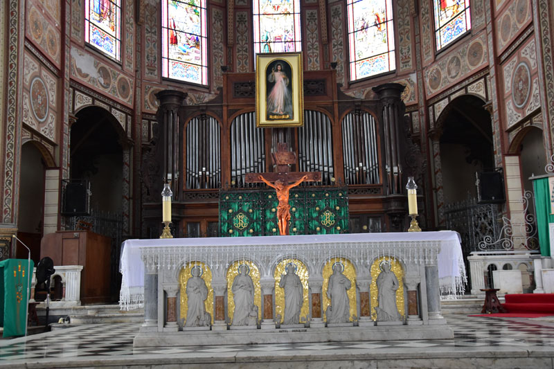 Nous avons parcouru une partie de la promenade du front de mer, avec une belle vue sur le Fort St Louis. Une partie seulement car nous avons essuyĂ© une bonne averse… ça refroidit toujours un peu ! Du coup, on s’est dirigĂ© vers la cathĂ©drale et nous venons de nous apercevoir que nous avons ratĂ© une grande fresque au sol sur cette promenade (en lisant le guide qui nous aide Ă Ă©laborer le texte du blog !!!). Et voilĂ ce que c’est que de ne pas se documenter suffisamment avant de partir !