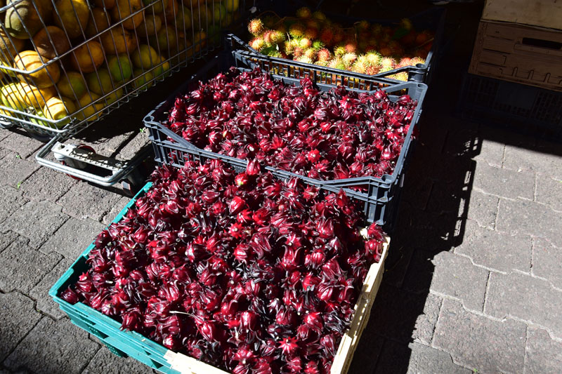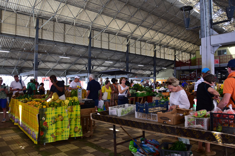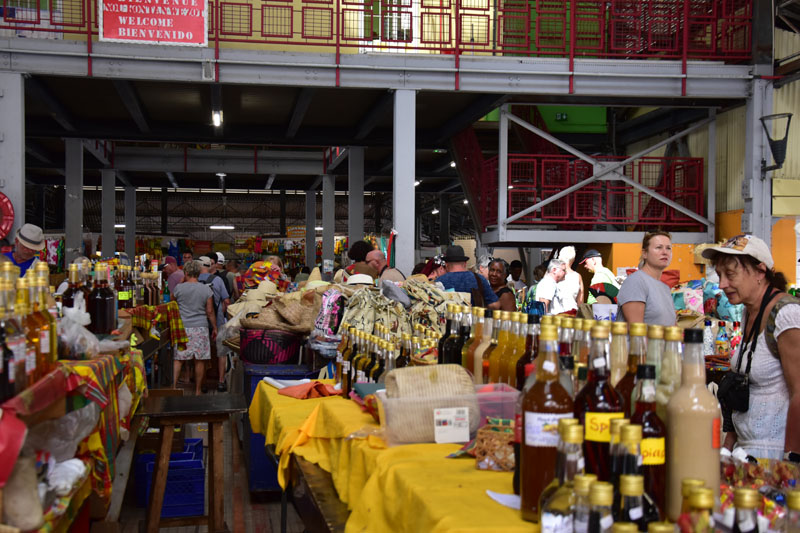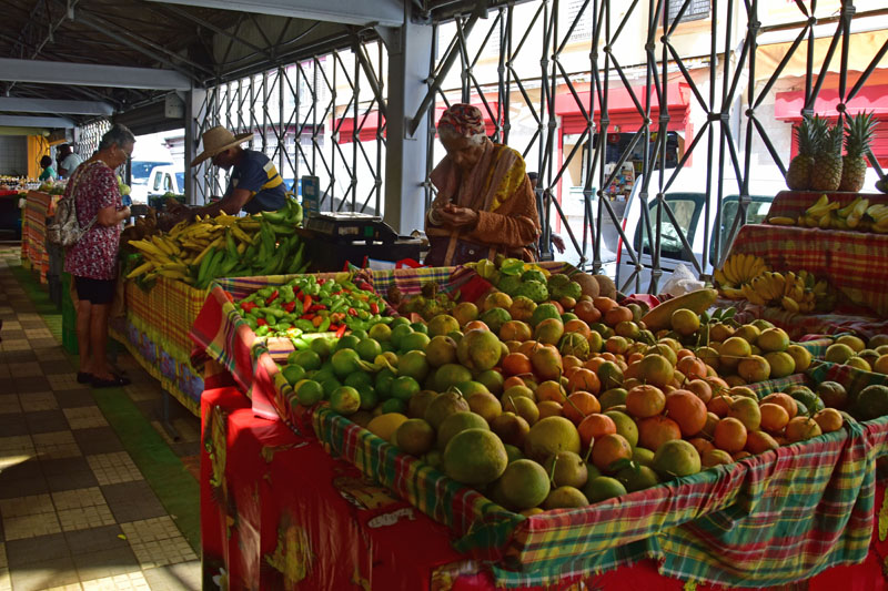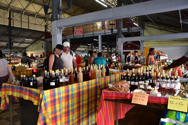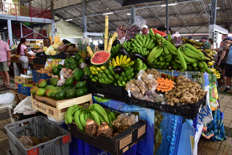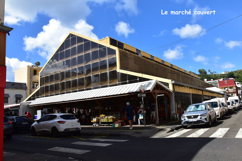 Nous nous sommes ensuite dirigĂ©s vers le marchĂ© couvert oĂč nous avons achetĂ© des fruits et lĂ©gumes qui pesaient bien lourds. C’est Blandine qui s’est coltinĂ©e cette charge et pourtant, nous n’avions pas encore fini notre tour !!! Le marchĂ© nous a un peu déçu, nous l’avions visitĂ© lors de notre dernier sĂ©jour, certes il a bien longtemps, mais aujourd’hui fini les martiniquaises avec leurs jolis costumes et coiffes en madras đ…