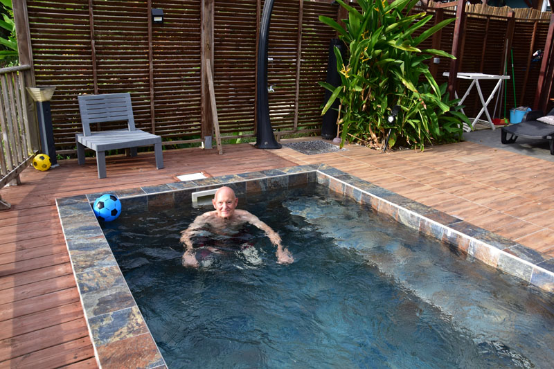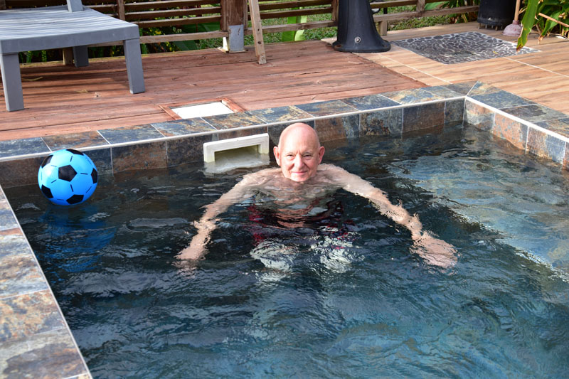 Nous avons passĂ© l’aprĂšs-midi autour et dans la piscine, ce qui nous a fait le plus grand bien… MĂȘme PĂ©pĂšre est allĂ© faire trempette, c’est tout dire !!!