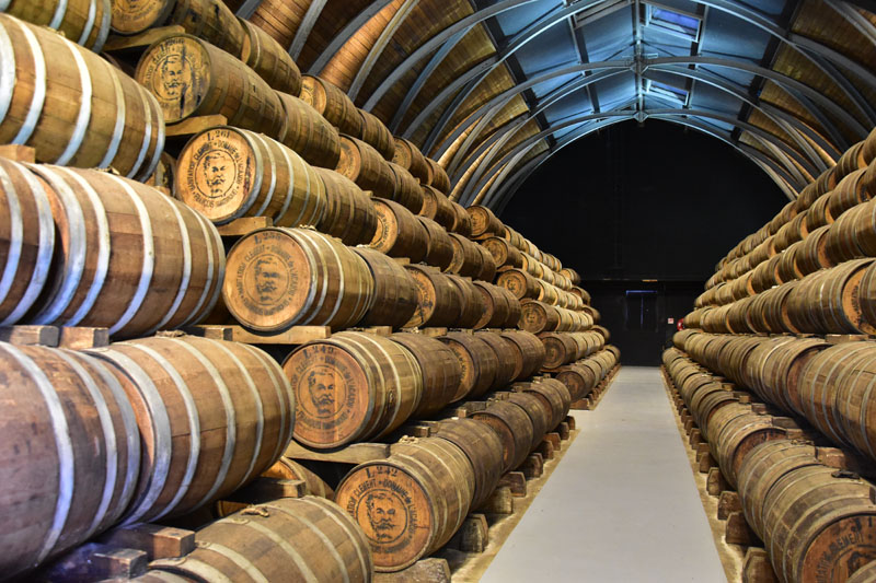 Vient ensuite la visite des chais et de l’ancienne distillerie. C’est très bien fait et nous avons apprécié les photos qui jalonnent les murs de la distillerie, avec les noms et les emplois tenus par ces personnes, ce qui donne une âme à ces anciens bâtiments…
