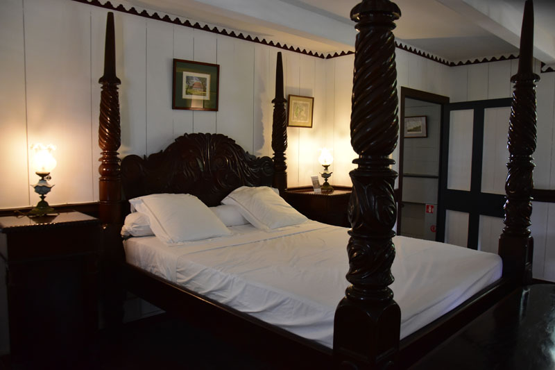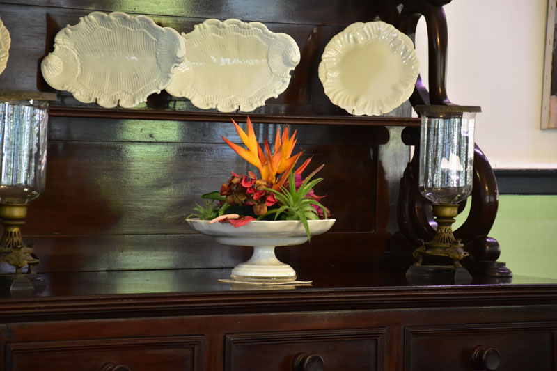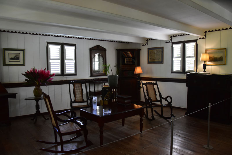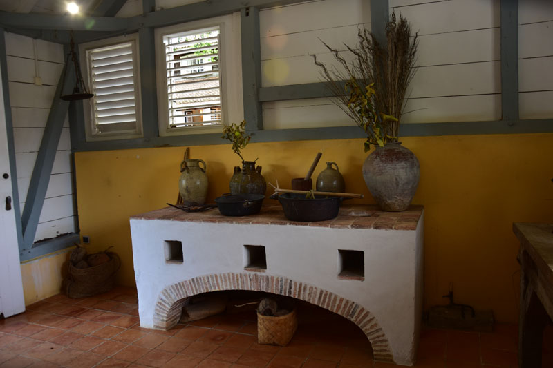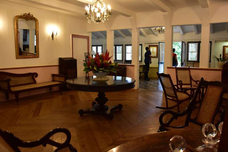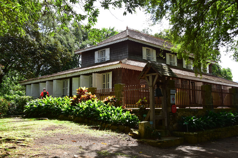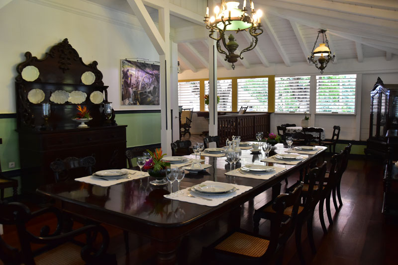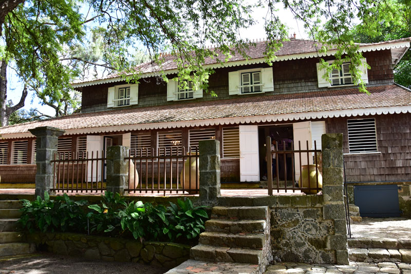 La maison principale trône majestueusement au-dessus du domaine, abritée par un bouquet d’arbres. Agrandi au fil du temps d’un étage et de galeries latérales pour la ventilation, ce bâtiment d’architecture créole a conservé toute son élégance. Elle est entourée d’un ensemble domestique composé d’une écurie, d’une cuisine, de la case de l’économe rebaptisée « Bush-Mitterand » en souvenir du sommet franco-américain de 1991 qui y a eu lieu, et de la « case à Léo », ancien hangar à calèches devenu salle d’exposition permanente.