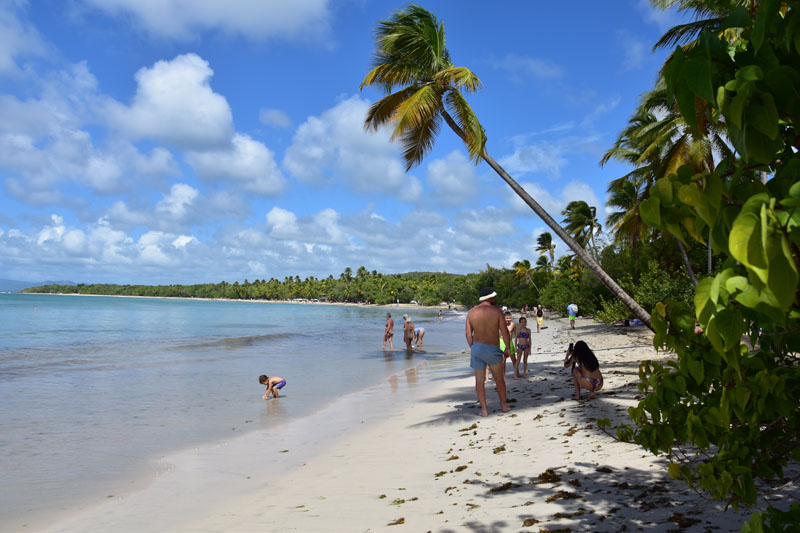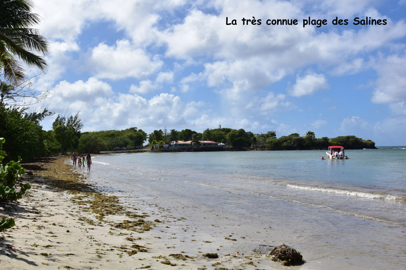 Je pense que la plage la plus connue de la Martinique est sans conteste la plage des Salines, aussi, nous avons voulu allez y faire un tour. Je ne vous explique pas la galère pour se garer ! Il nous a fallu prendre un chemin caillouteux et boueux (à cause des pluies qui tombent quotidiennement) et parcourir au moins 500 mètres pour trouver un espace où se garer, tout était déjà blindé sur la route d’accès ! De la folie, et entre nous soit dit, la plage n’a rien d’idyllique car la bande sableuse est vraiment minime ! Bref, il faut vraiment vouloir aller aux Salines, mais après tout, il faut de tout pour faire un monde !